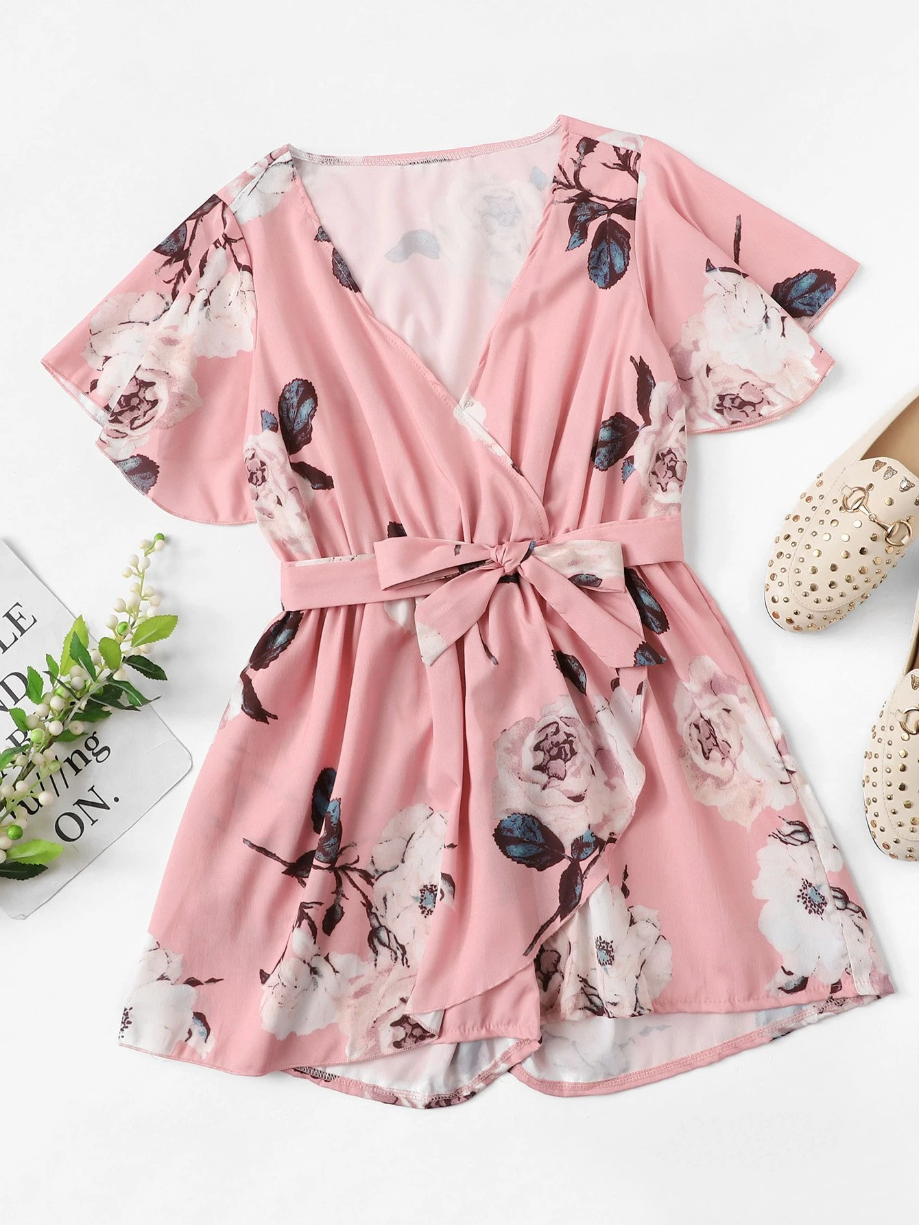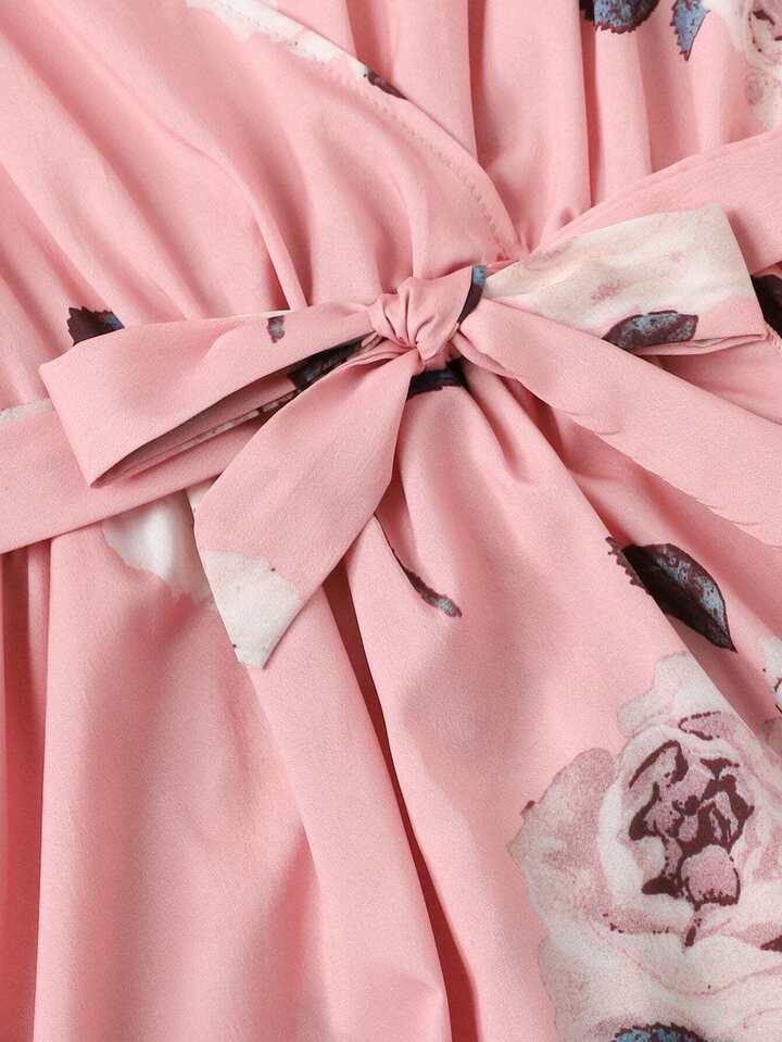 Belted Detail Wrap Floral Romper