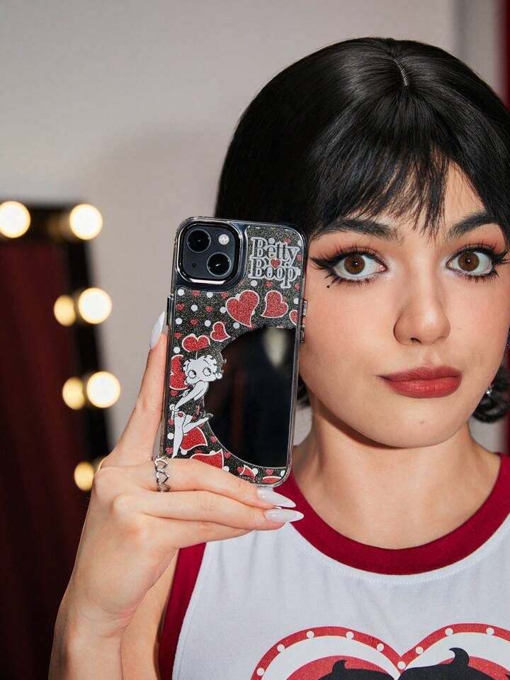 Betty Boop | ROMWE Cartoon Girl And Heart Printed Mirror Phone Case