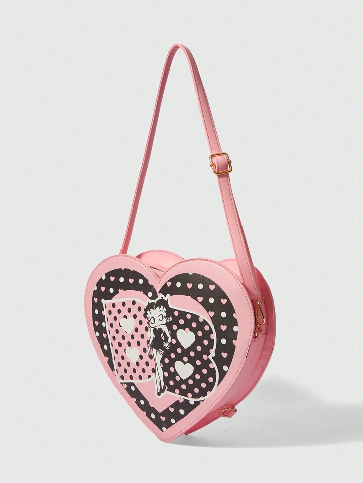 Betty Boop | ROMWE Dual-Purpose Heart Shaped Figure & Polka Dot Print Crossbody Bag Backpack, School