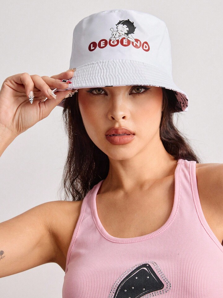 Betty Boop | ROMWE Letter Pattern Reversible Bucket Hat