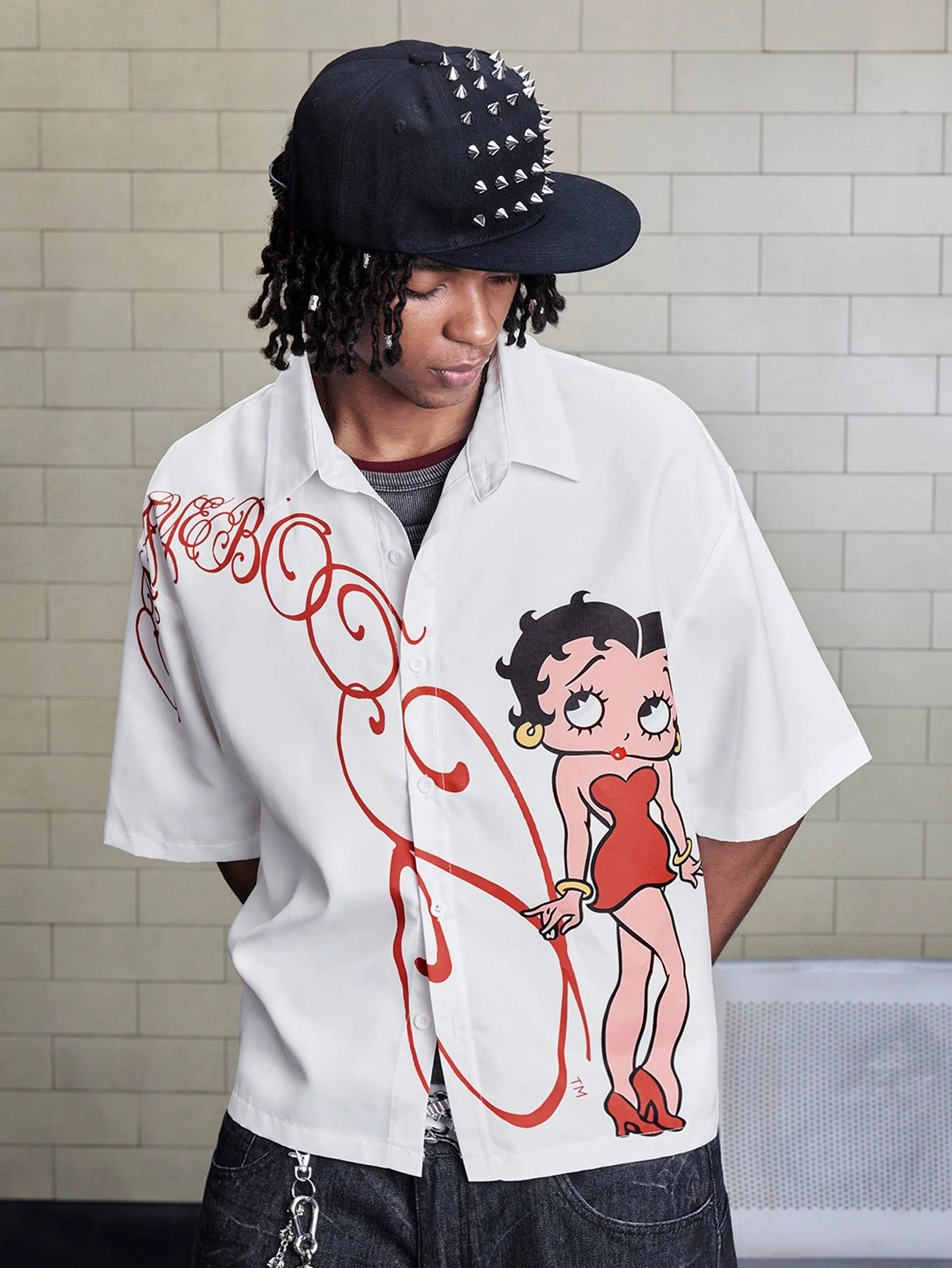 Betty Boop | ROMWE Men's Fashion Cartoon Character Print Single-Breasted Short Sleeve Shirt