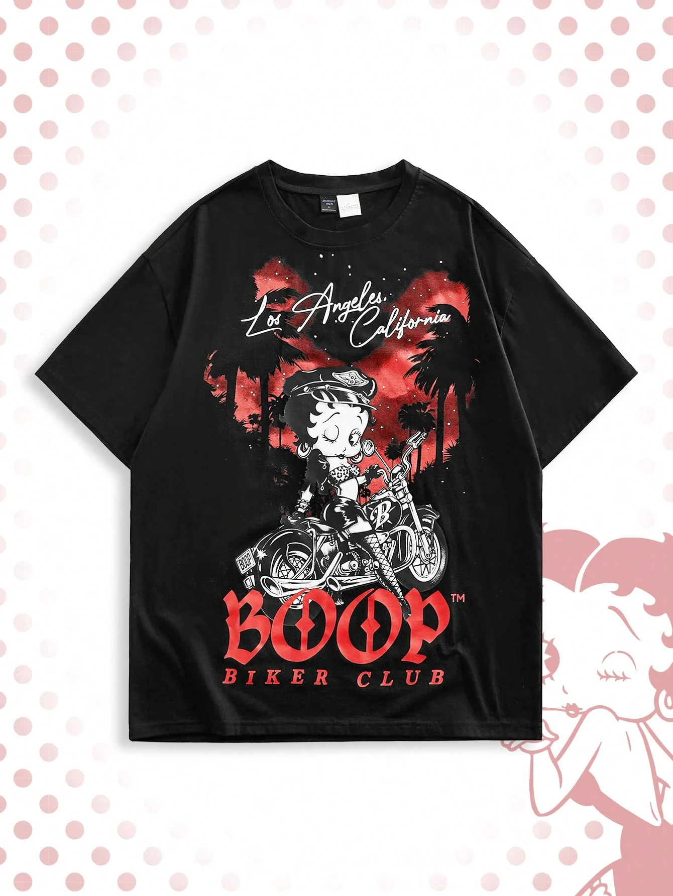Betty Boop | ROMWE Men's Round Neck Cartoon Letter Print Casual Versatile Daily Wear Short Sleeve T-Shirt