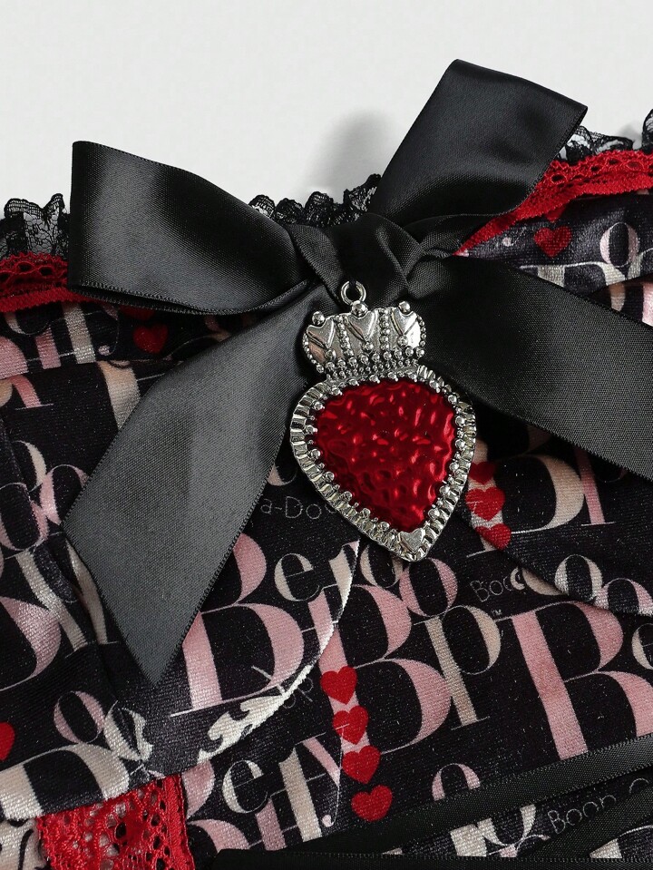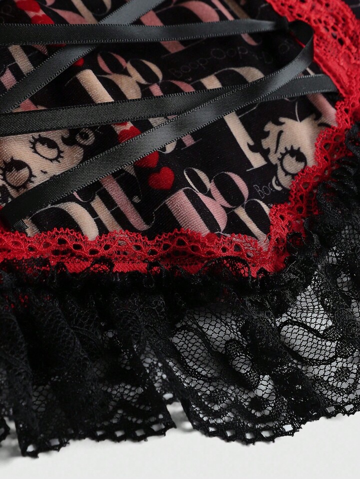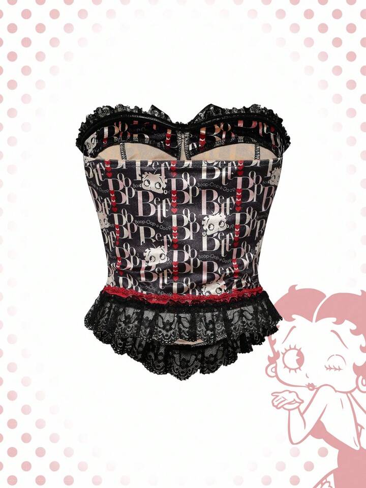 Betty Boop | ROMWE Y2K Letter Graphic Lace Up Contrast Lace Tube Top