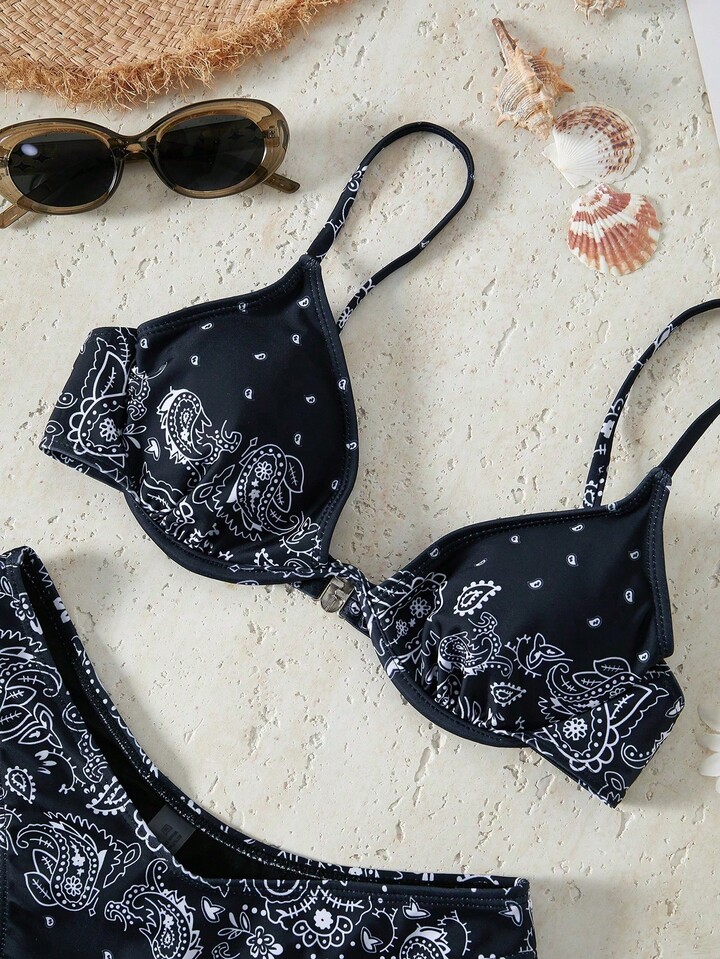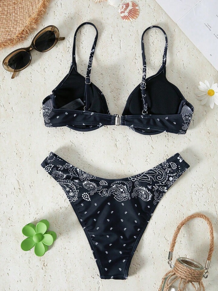 Bikinx Paisley Print Bikini Set Underwire Push Up Cami Bra & Cheeky Bottom 2 Pieces Western Bathing Suit Summer