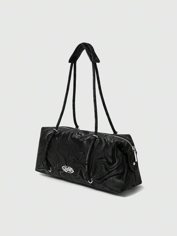 Black PU Leather Shoulder Bag With Large Capacity, Minimalist & Fashionable