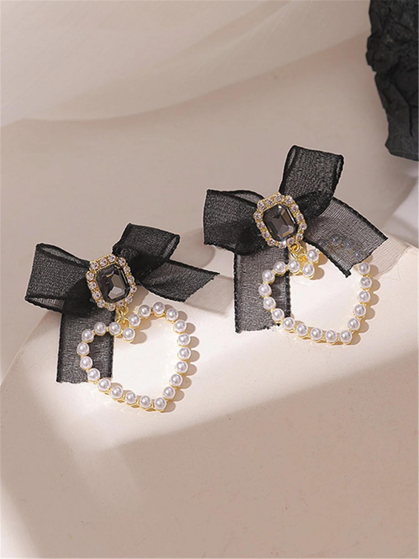 Bow & Faux Pearl Heart Decor Drop Earrings