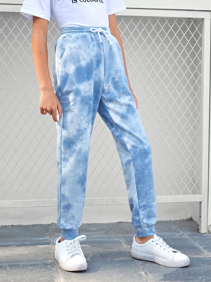 Boys Drawstring Waist Patched Detail Tie Dye Joggers
