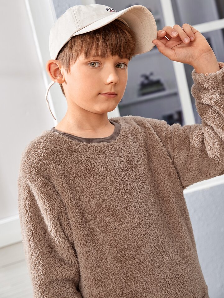 Boys Drop Shoulder Teddy Pullover & Sweatpants Set