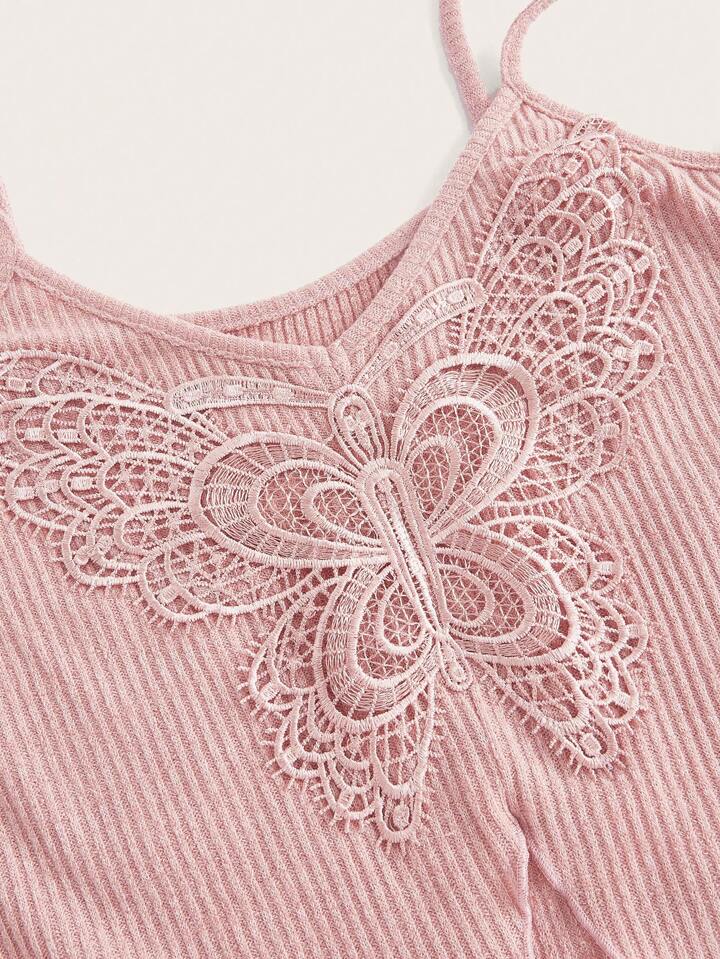 Butterfly Patched Cold Shoulder Split Hem Tee