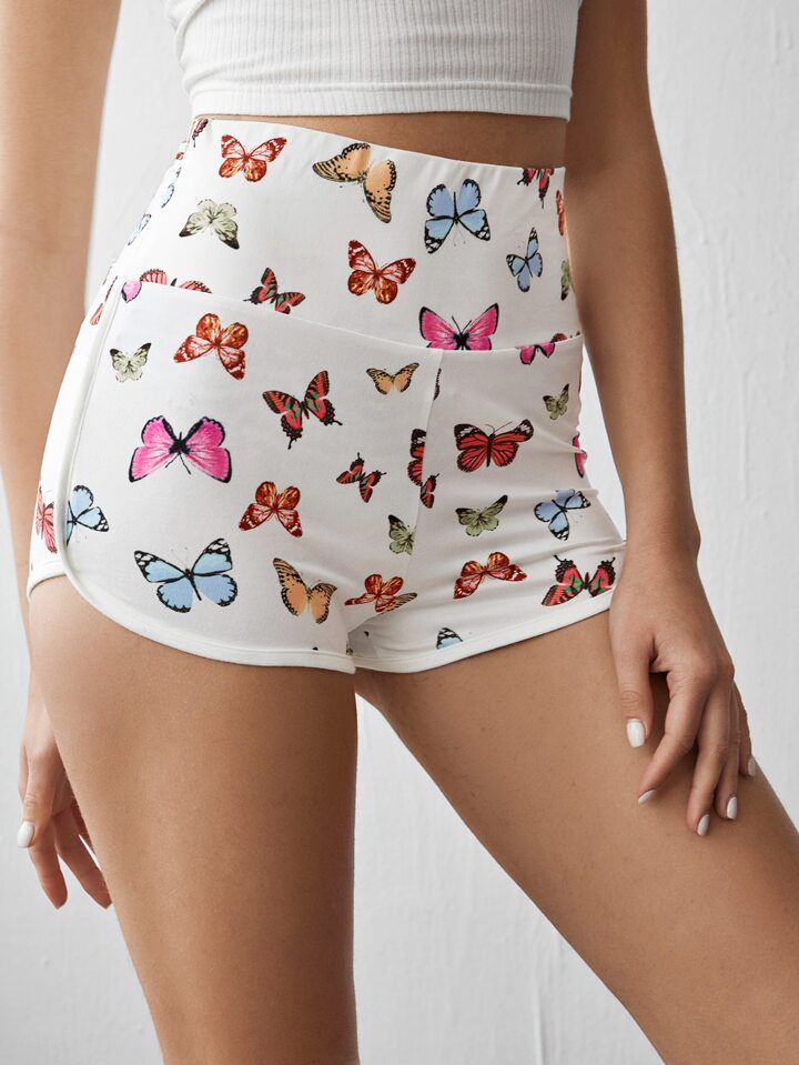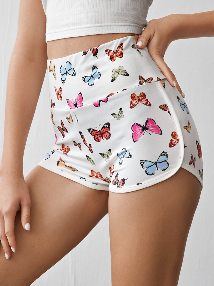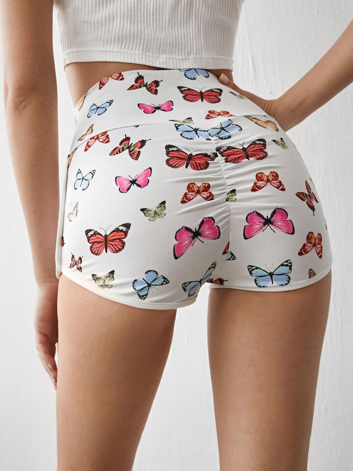Butterfly Print Wide Waistband Ruched Legging Shorts
