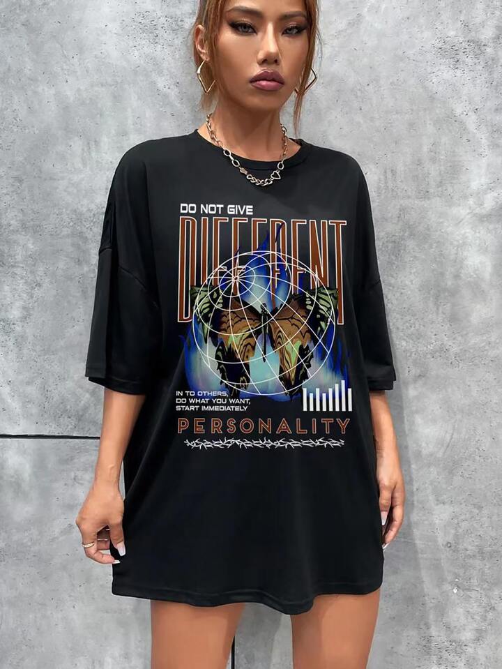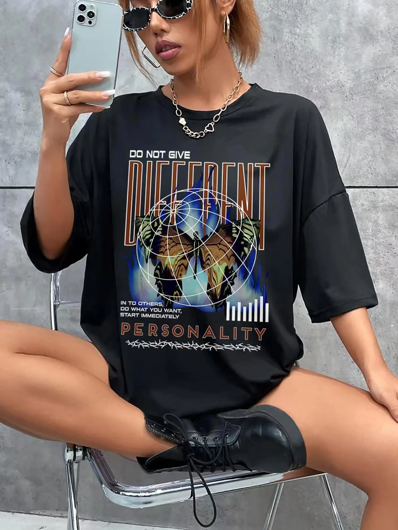 Butterfly & Slogan Graphic Drop Shoulder Tee