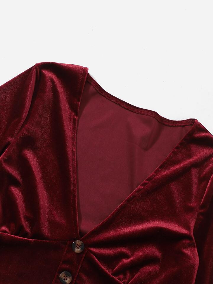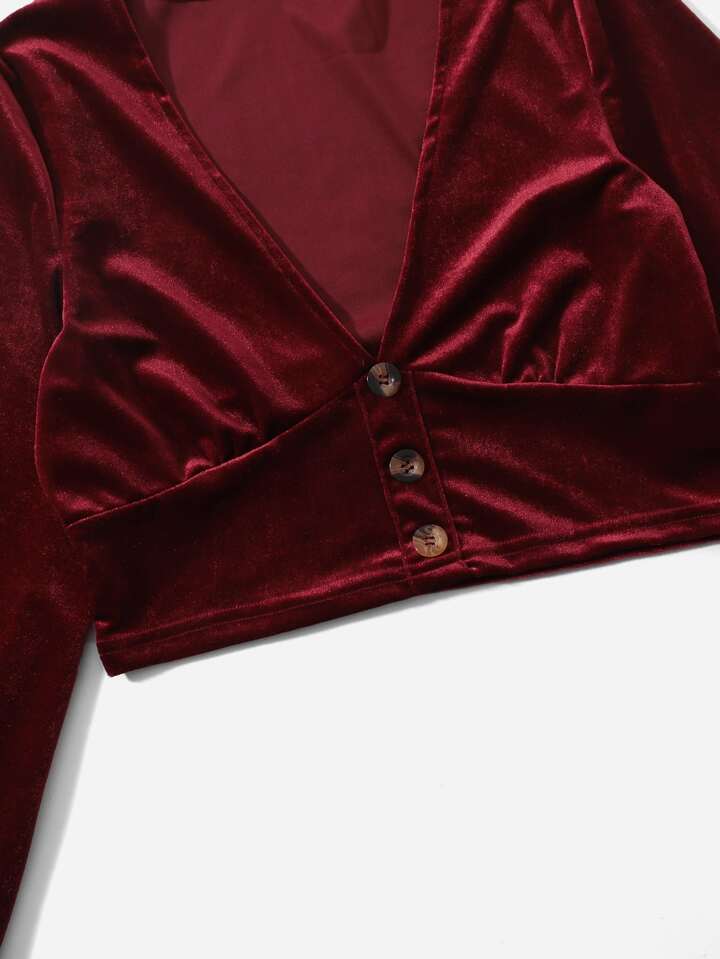 Button Detail Velvet Top