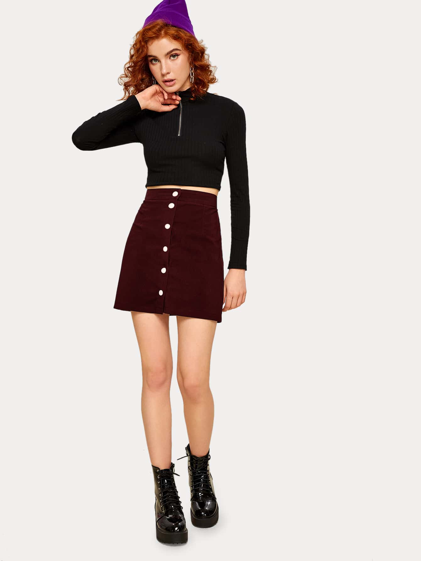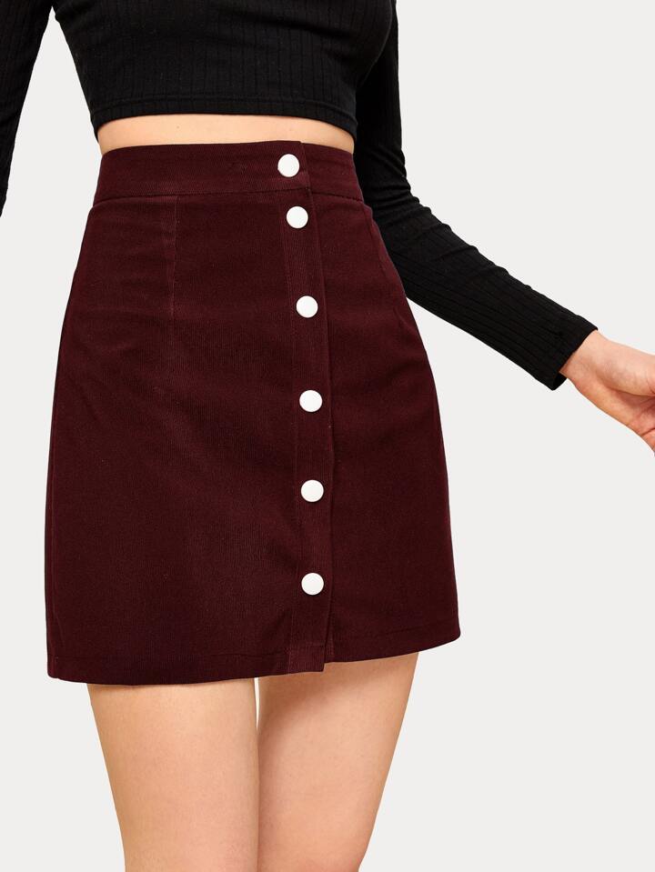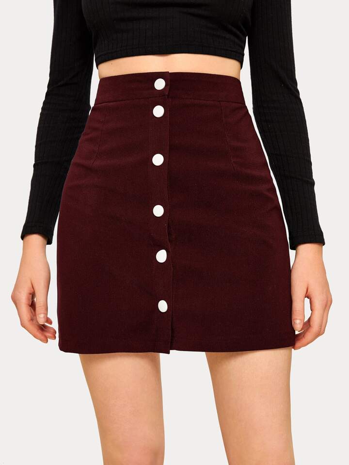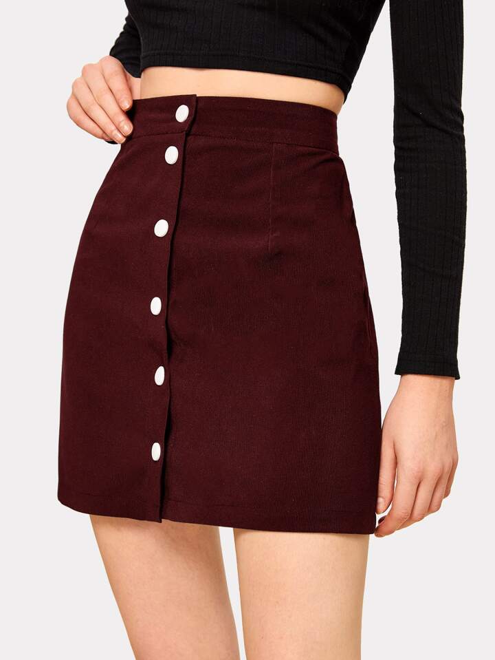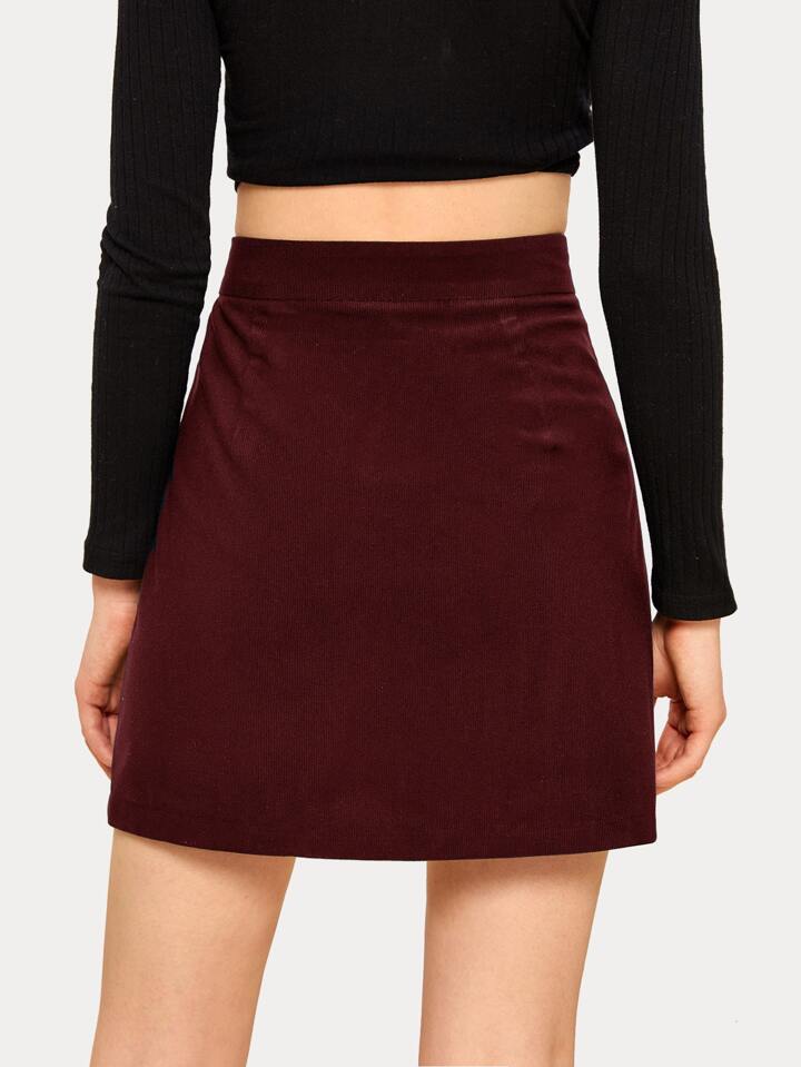Button Front Burgundy Corduroy Skirt