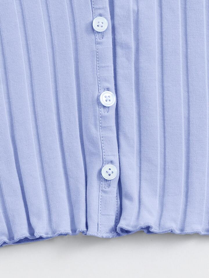 Button Up Rib-knit Crop Top