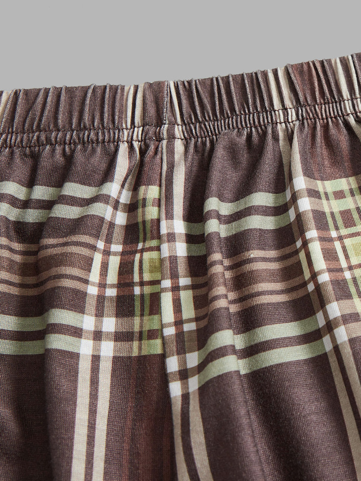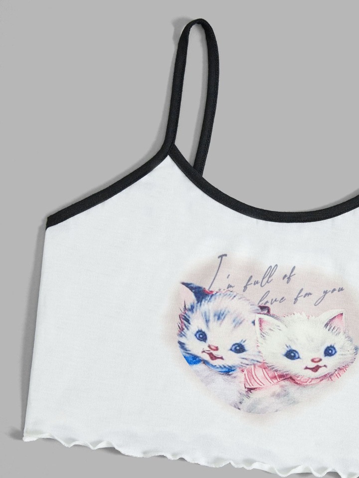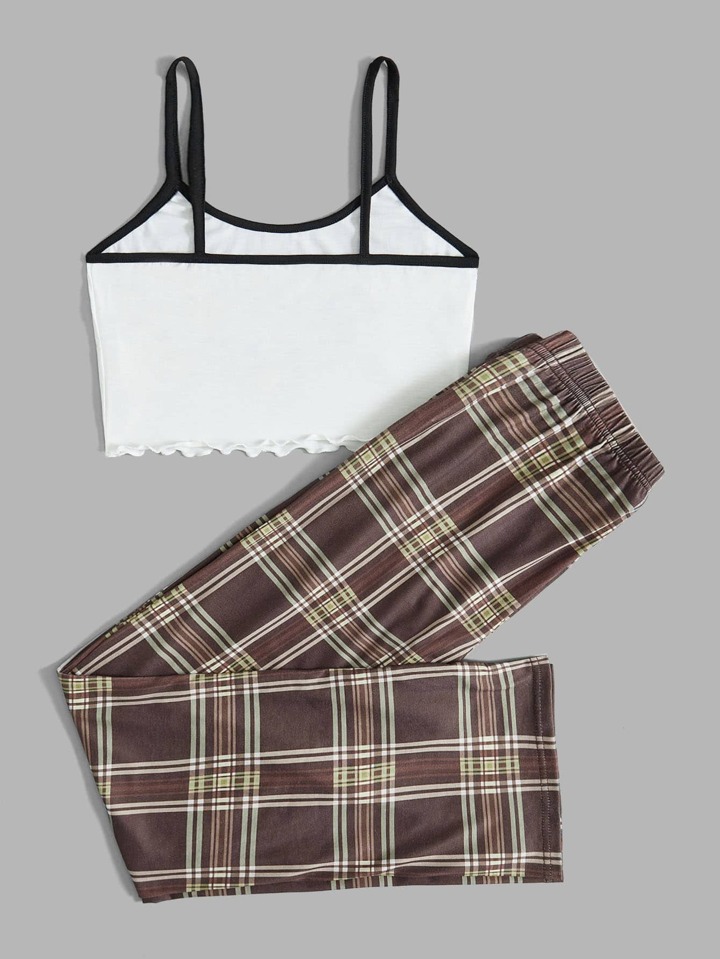 Cartoon Cat Graphic Plaid Contrast Binding PJ Set