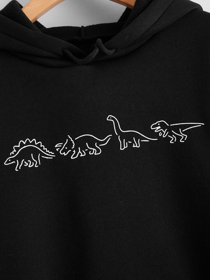 Cartoon Dinosaur Graphic Kangaroo Pocket Hoodie