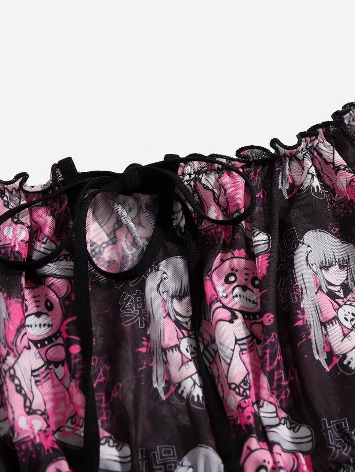 Cartoon Figure Graphic Frill Tie Side Lingerie Set