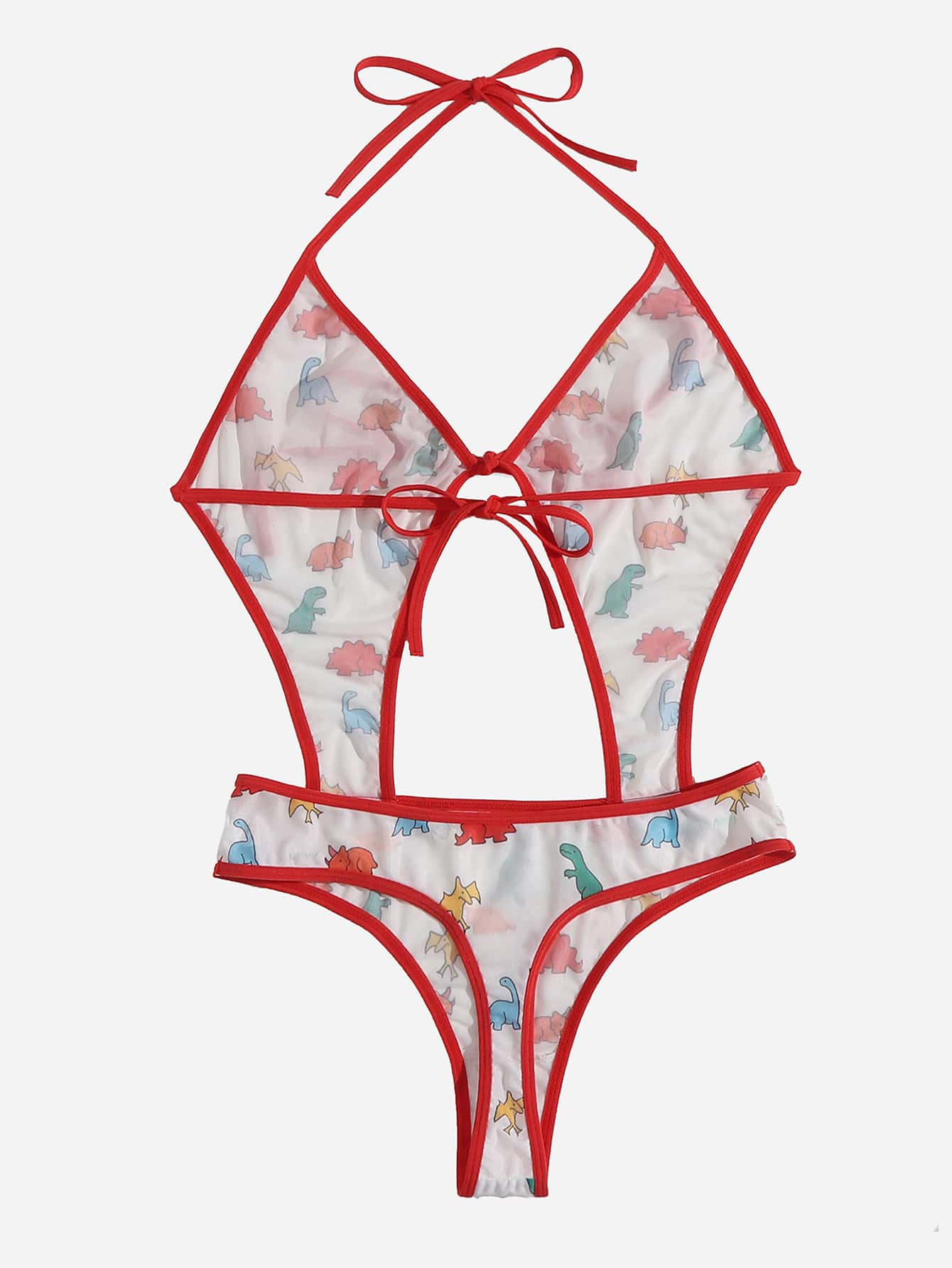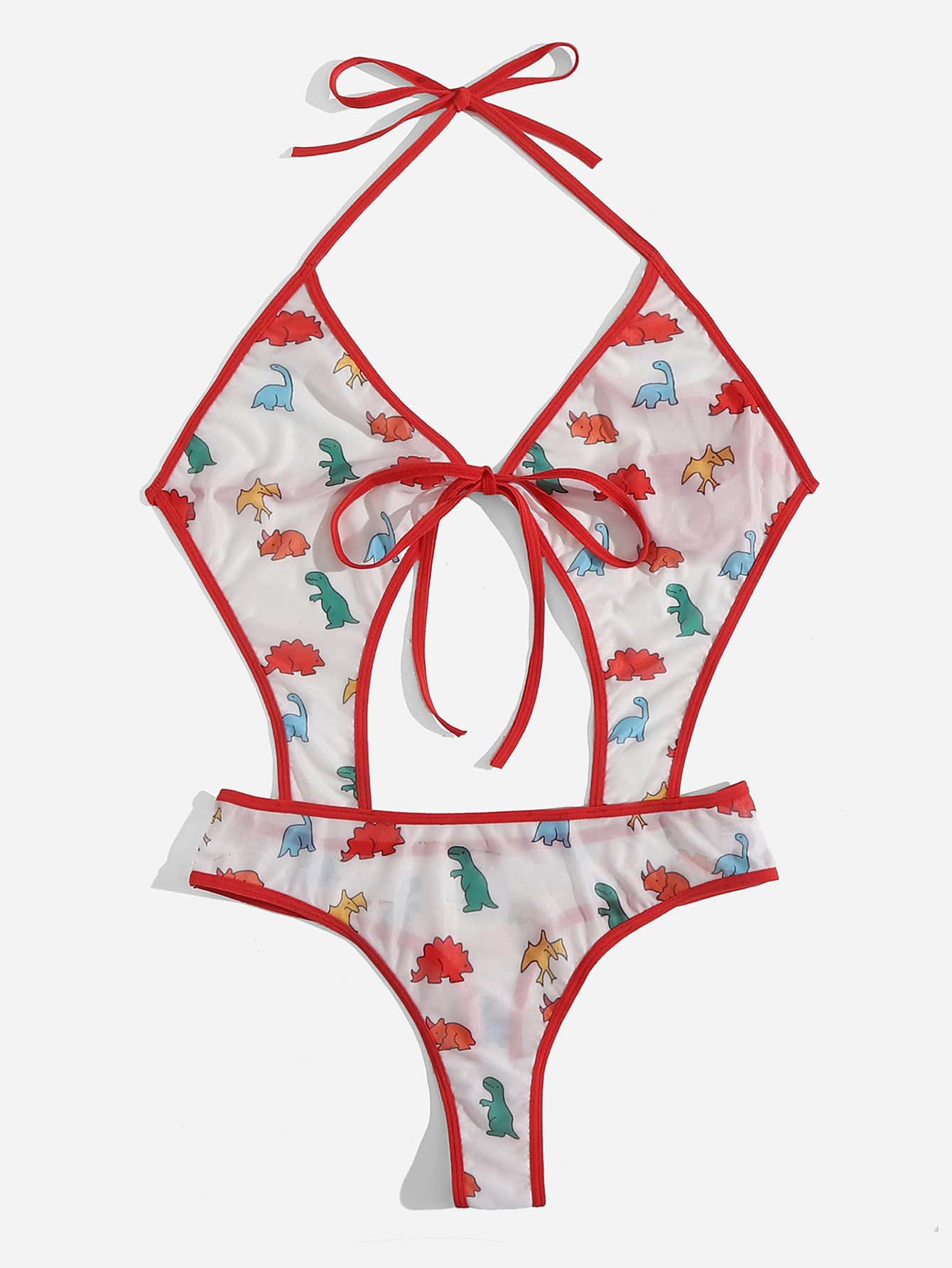 Cartoon Graphic Cut-out Halter Teddy Bodysuit