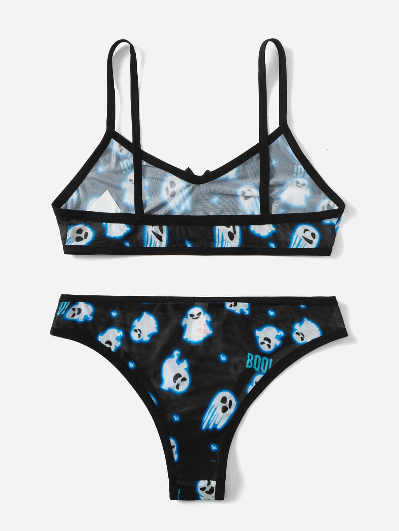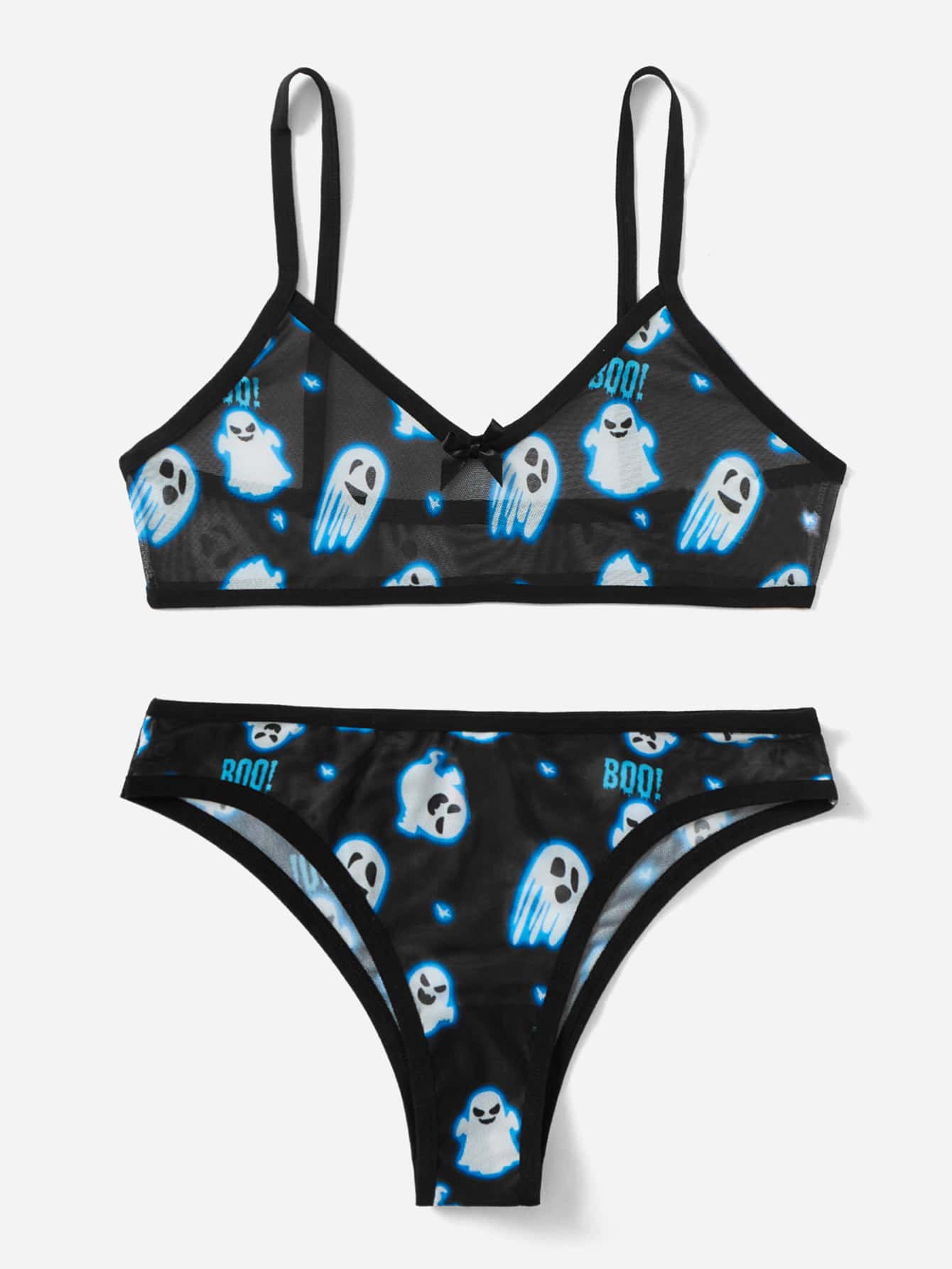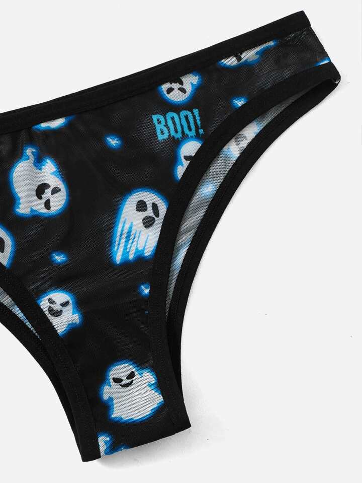 Cartoon Graphic Mesh Lingerie Set