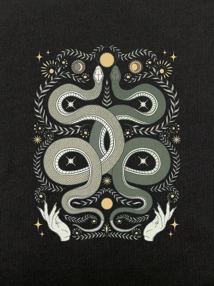 Casual Loose Fit Tee With Retro Gothic, Mysterious Stars, Moon, Snake Prints For Summer, School