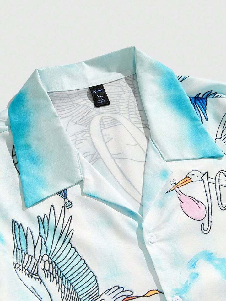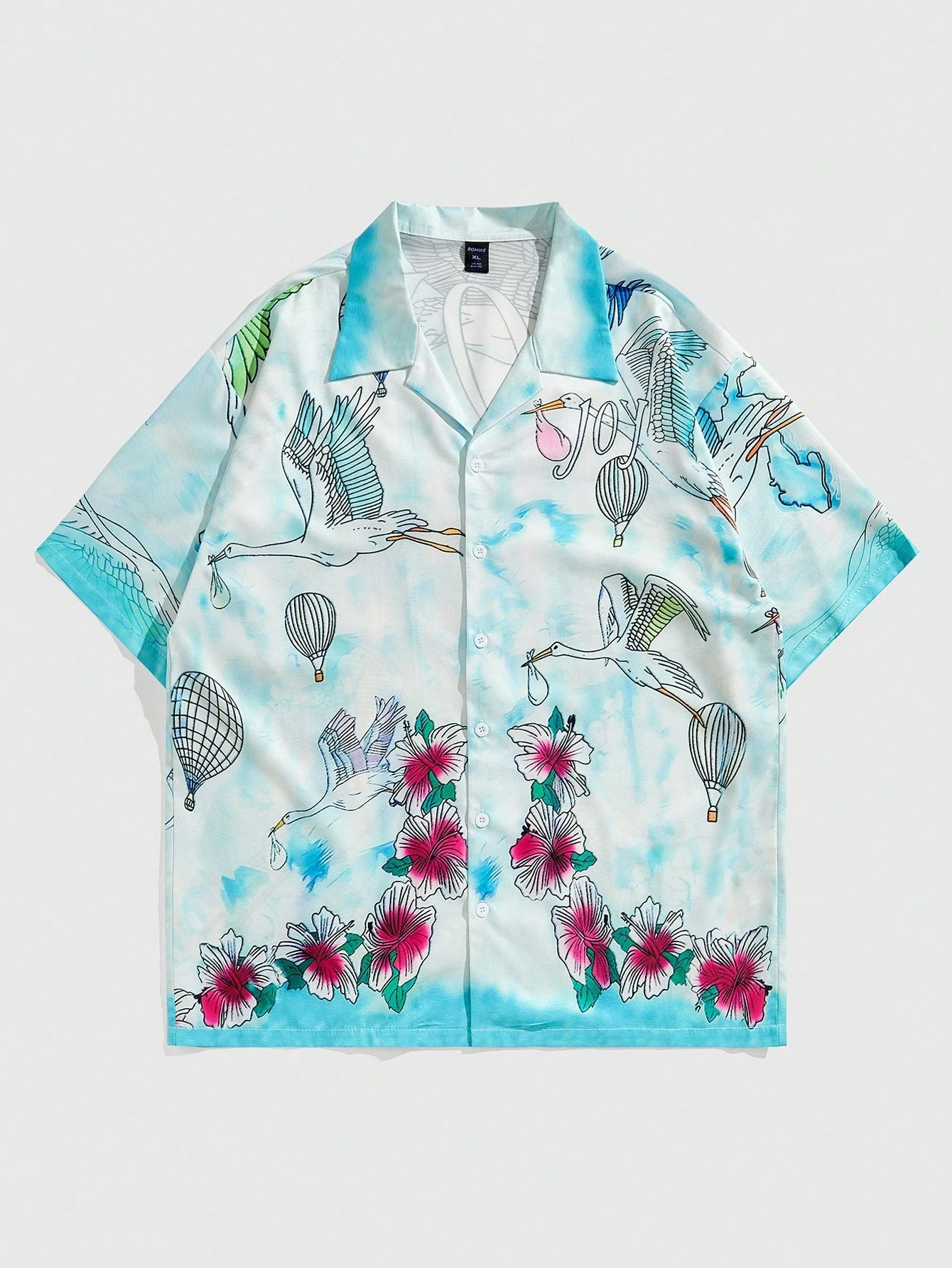 Casual Men's Hawaiian Floral & Bird Print Short Sleeve Shirt