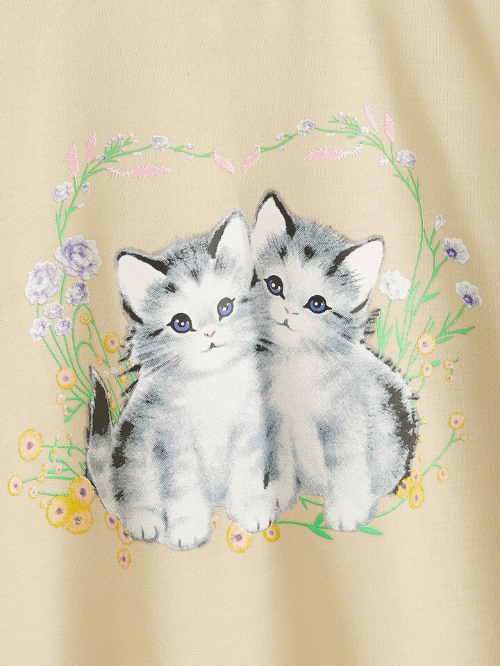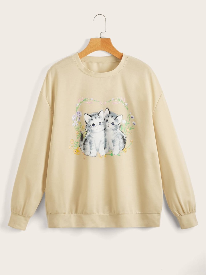 Cat & Floral Graphic Drop Shoulder Sweatshirt