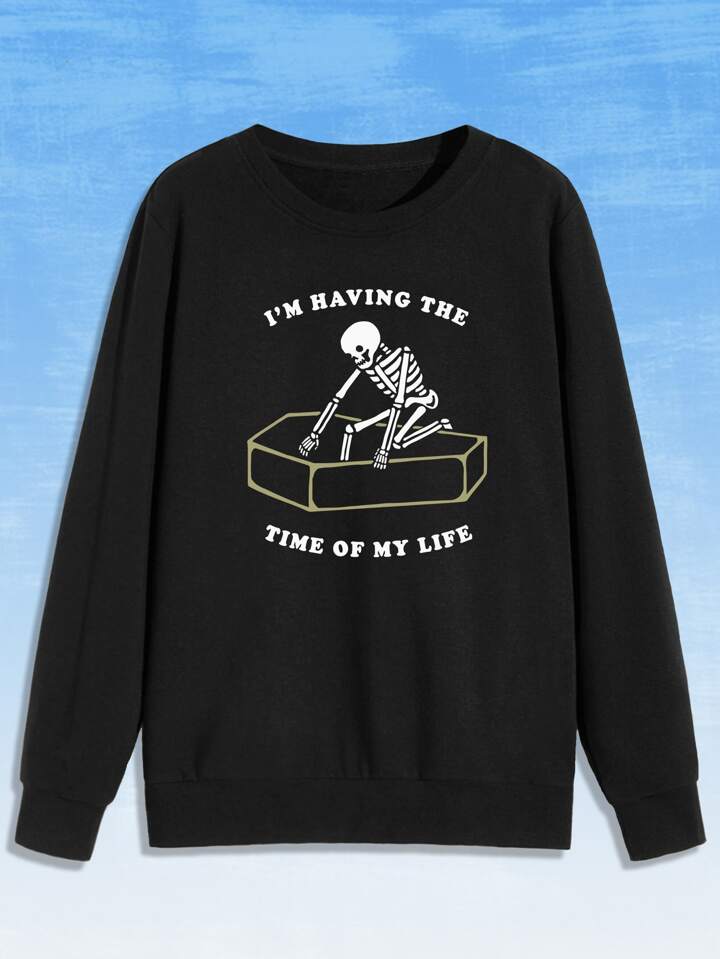 Catsneeze Slogan Skeleton Graphic Sweatshirt