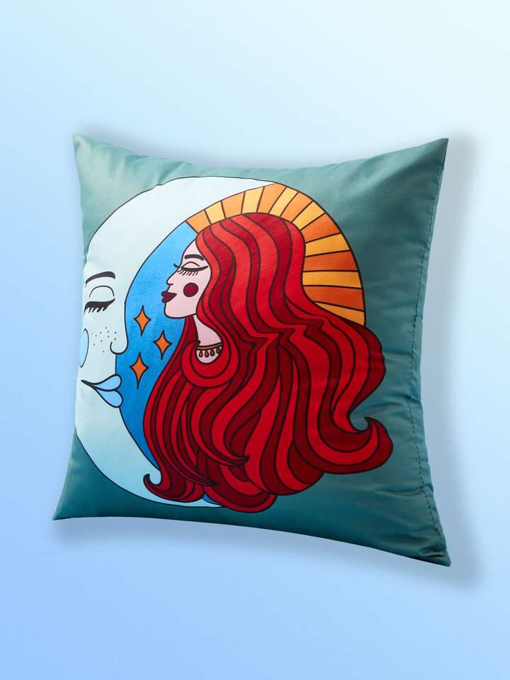 ChelseaZo Art Cartoon Figure & Moon Print Cushion Cover Without Filler