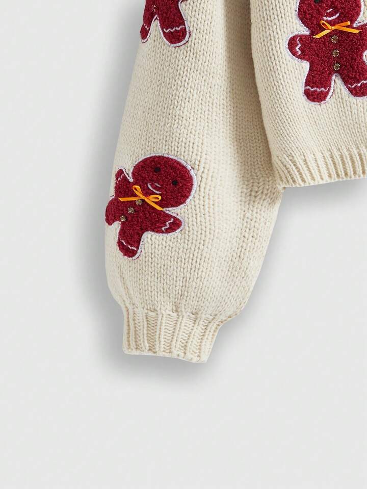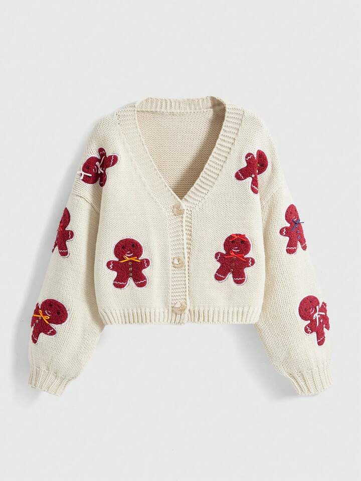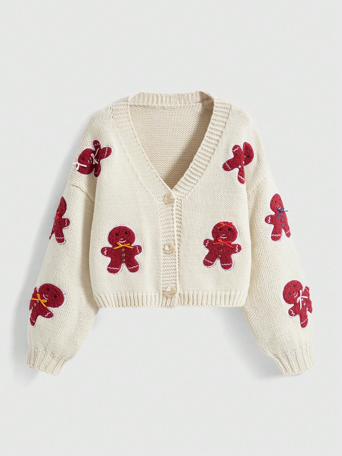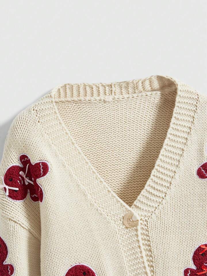 Christmas Gingerbread Embroidered Bow Loose Short Knitted Cardigan