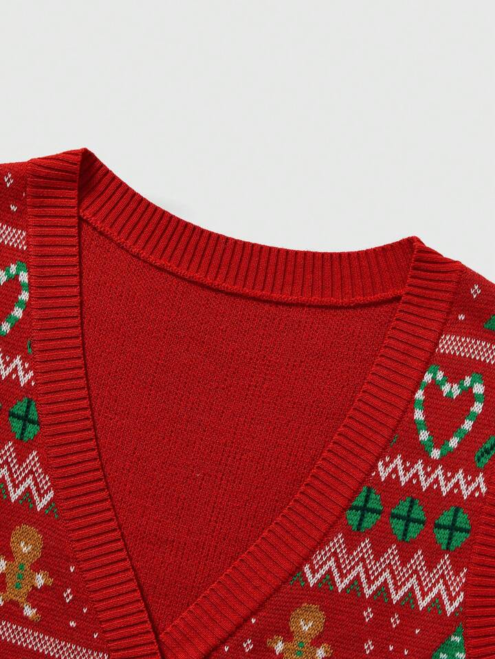 Christmas Party Heart, Christmas Tree, Gingerbread Man Pattern Cardigan Sweater Vest For Women