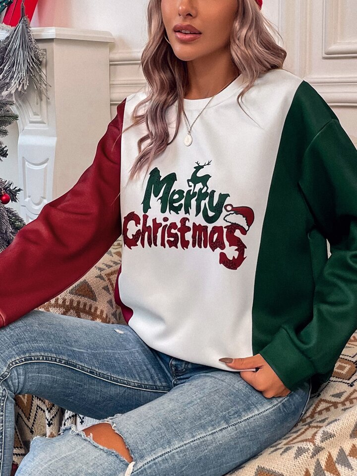 Christmas Print Colorblock Sweatshirt