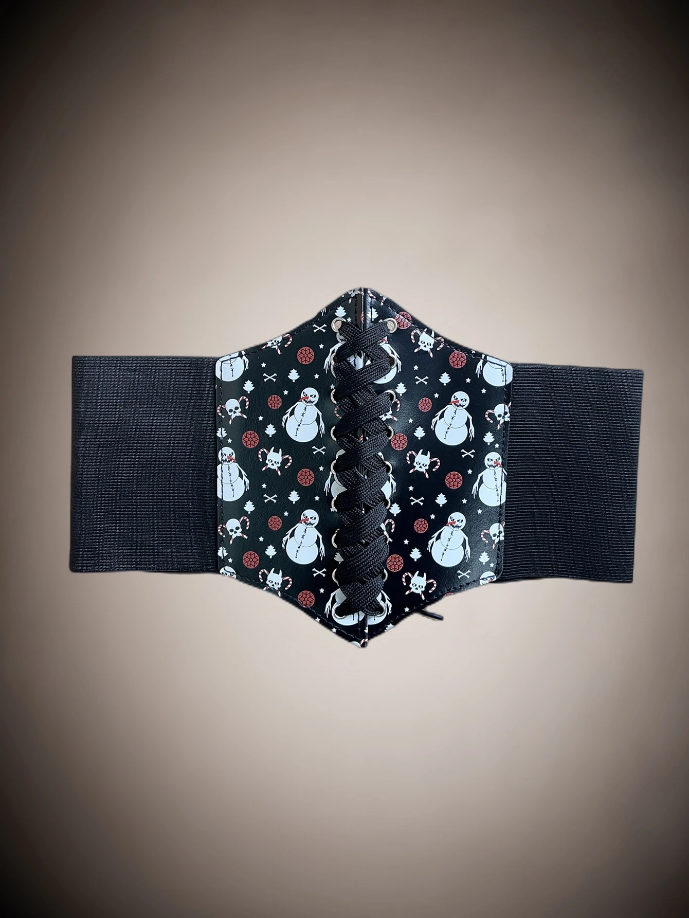 Christmas Snowman & Skull Pattern Lace Up Front Corset Belt