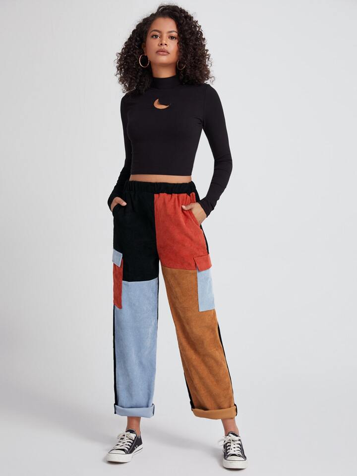 Colorblock Corduroy Pants