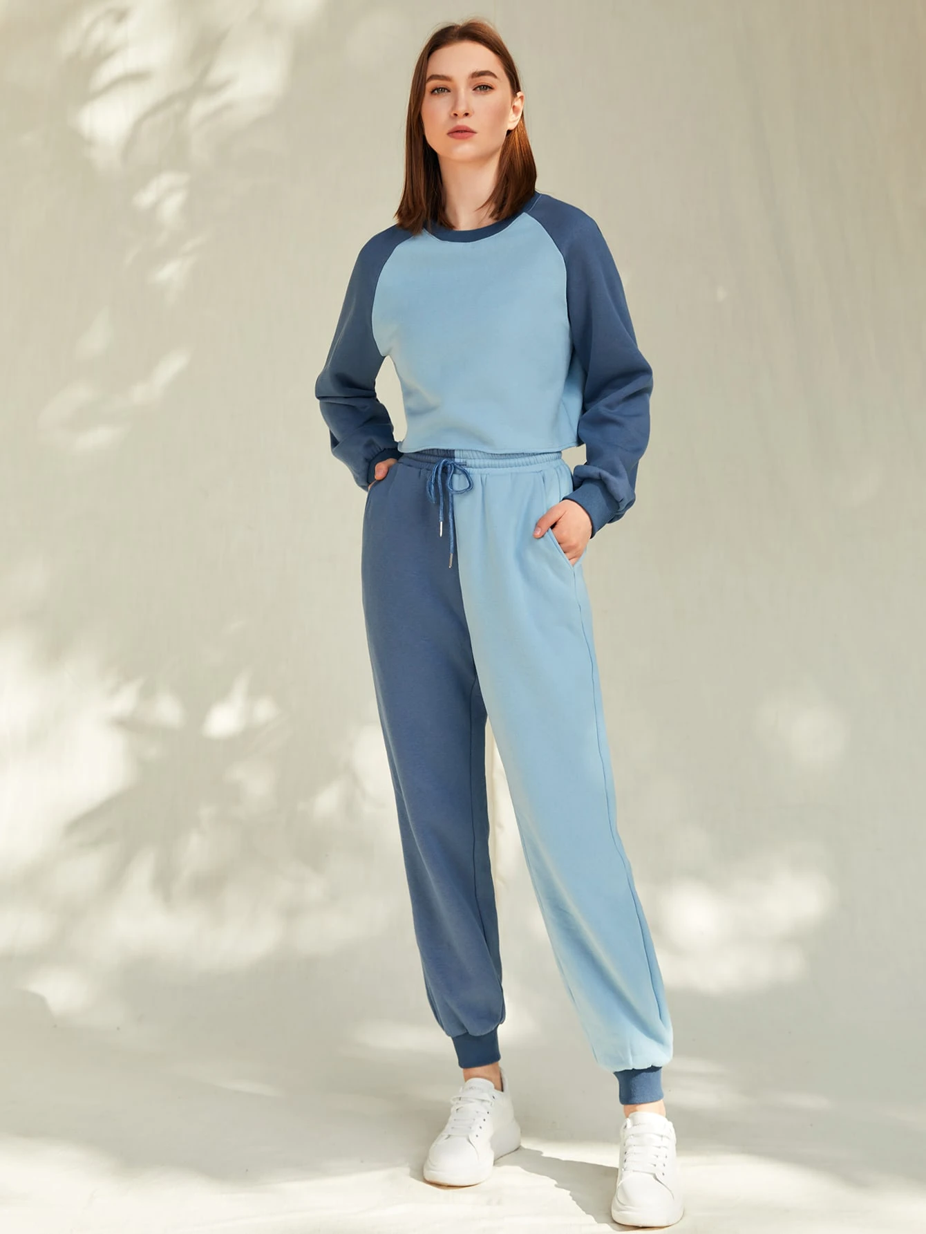 Colorblock Raglan Sleeve Pullover & Joggers Set