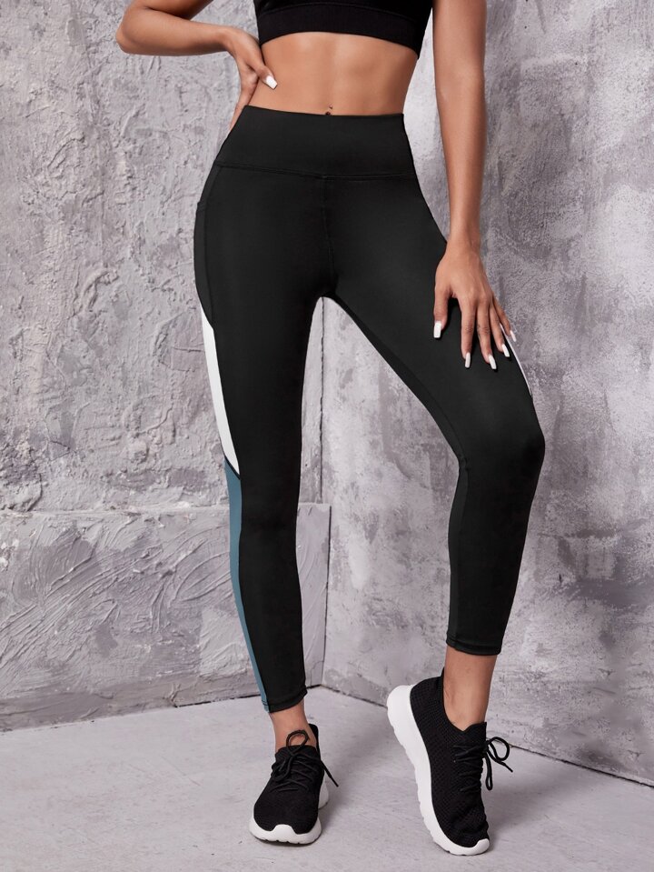 Colorblock Wide Band Waist Sports Leggings With Phone Pocket