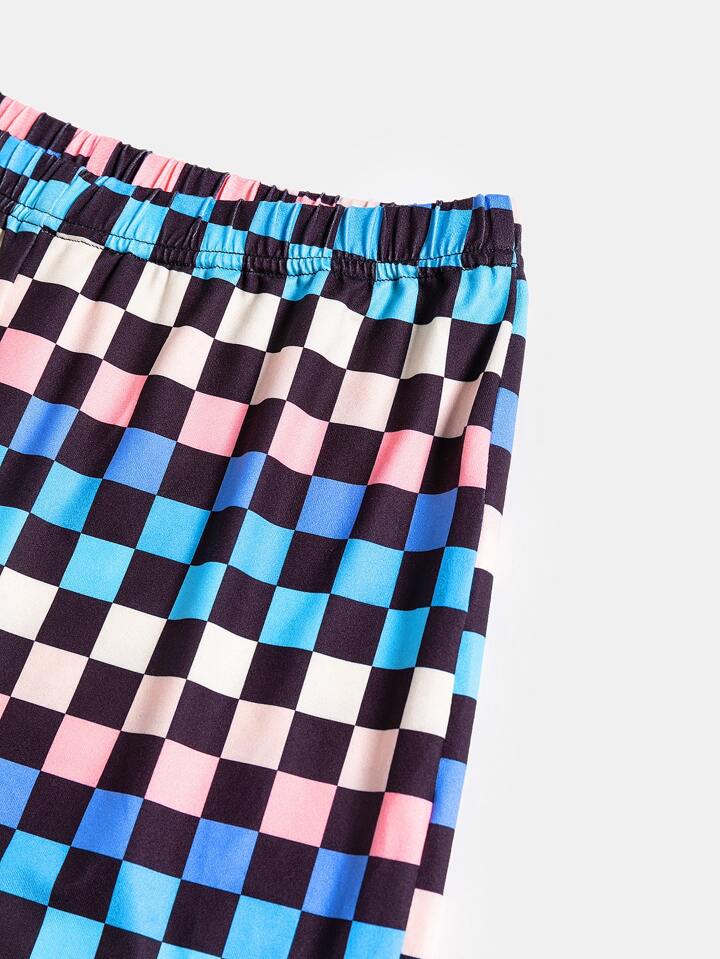 Colorful Checkerboard Crop Tube Top & Biker Shorts