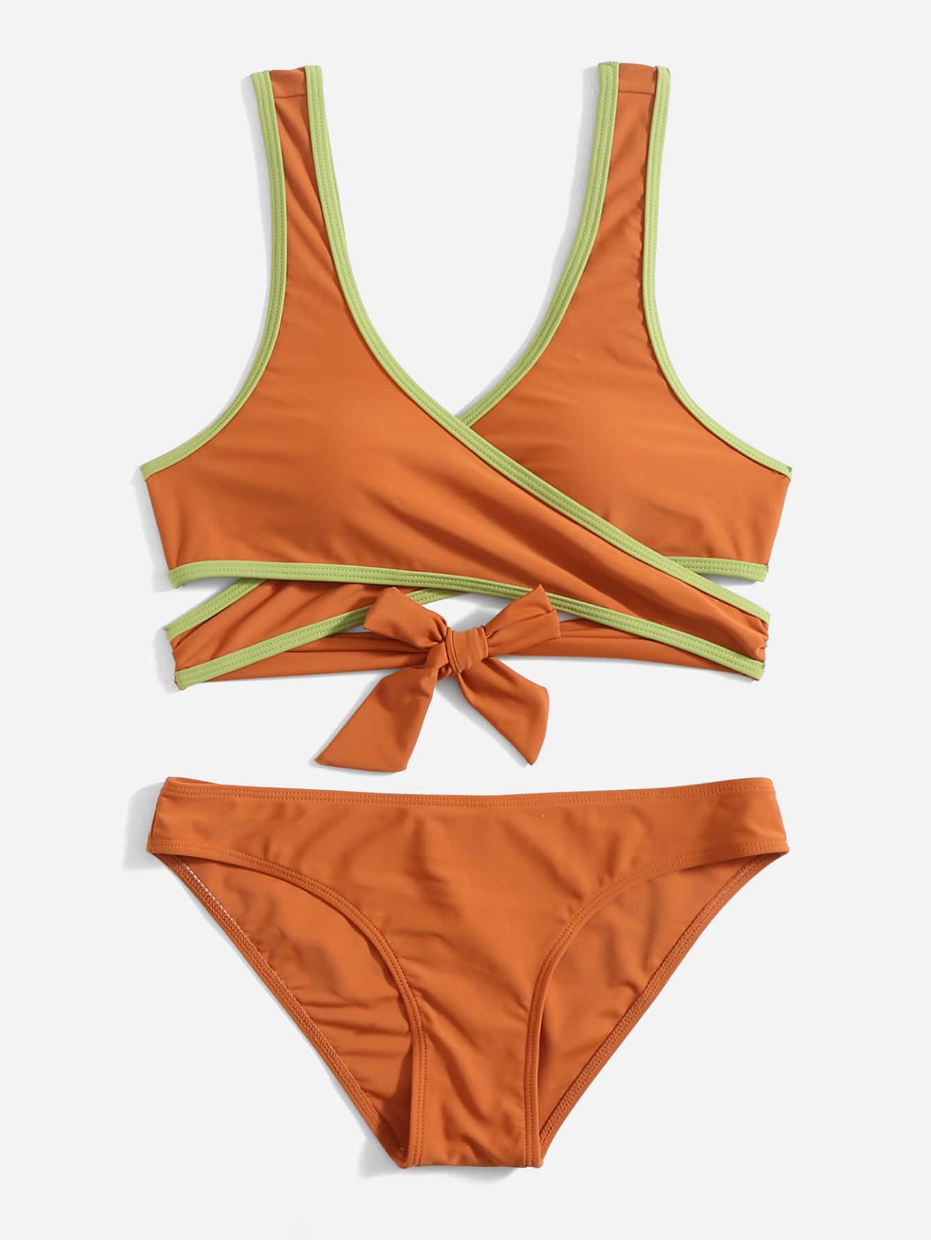 Contrast Binding Criss Cross Summer Beach Bikini Set