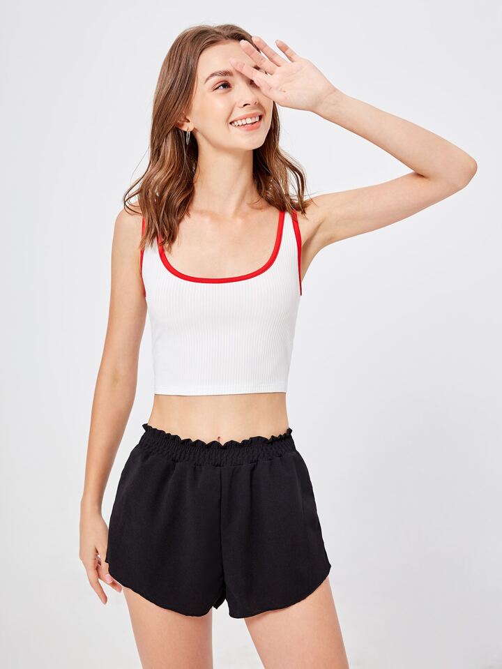 Contrast Binding Ribbed Tank Top