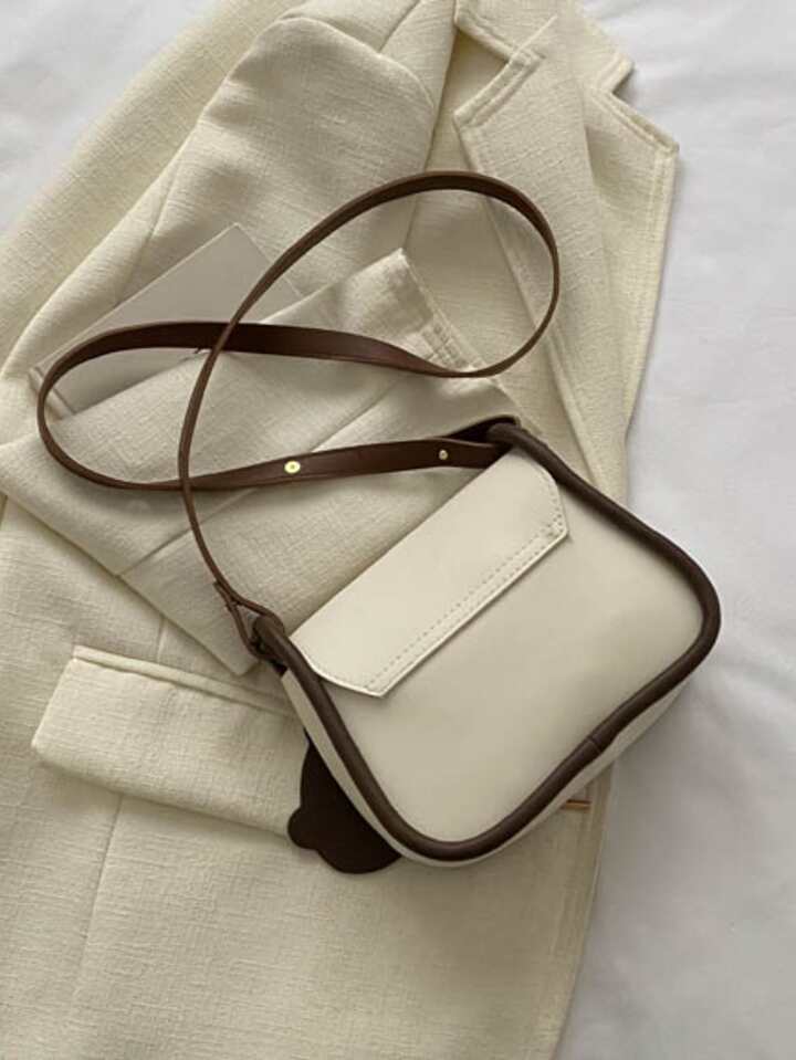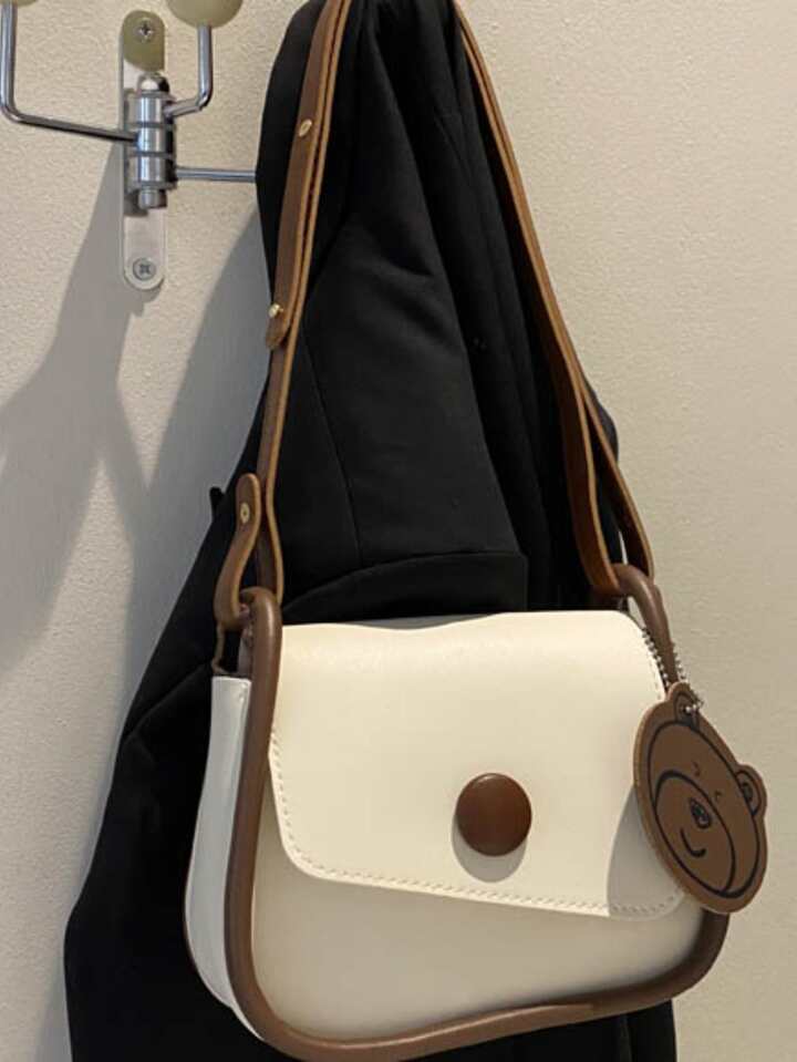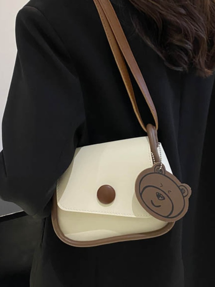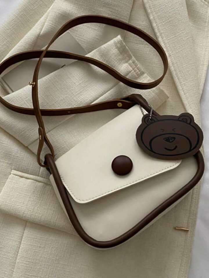 Contrast Binding Saddle Bag With Bag Charm Mini