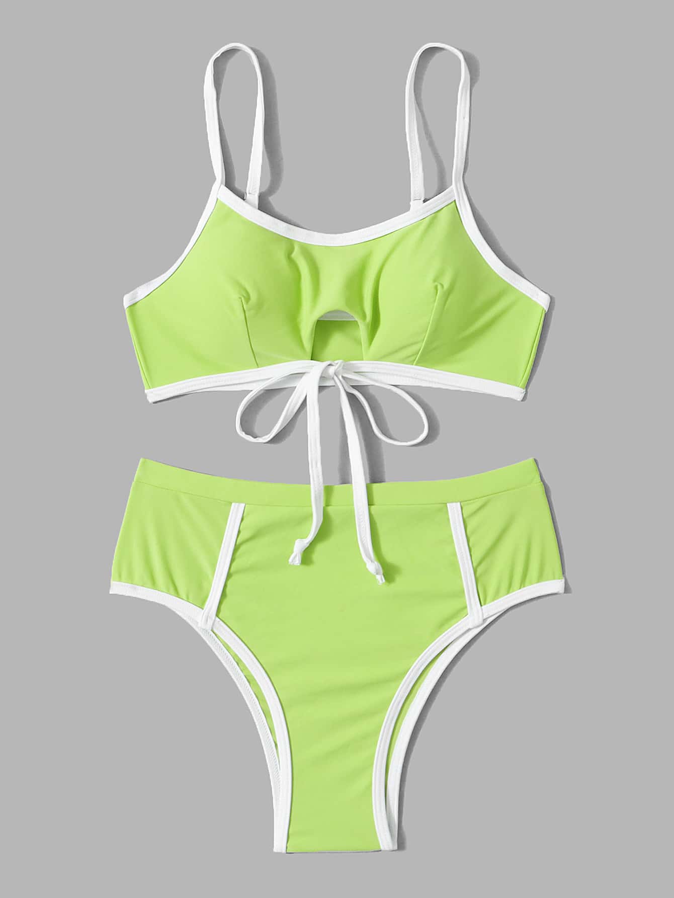Contrast Binding Tie Front Cut Out Bikini