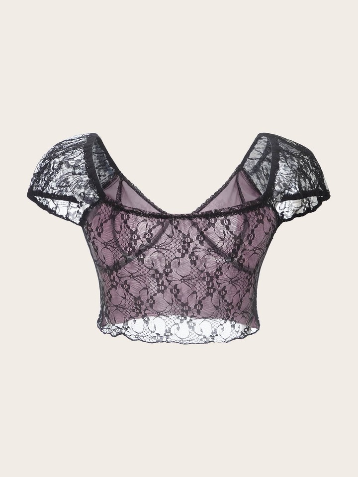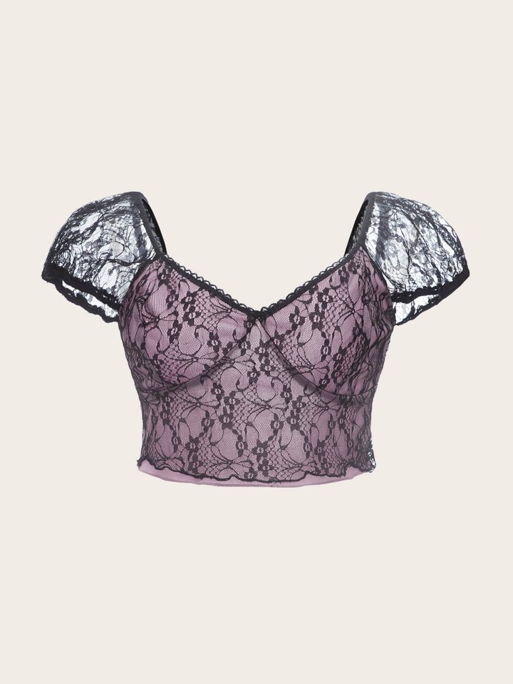 Contrast Lace Crop Tee