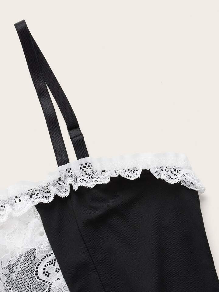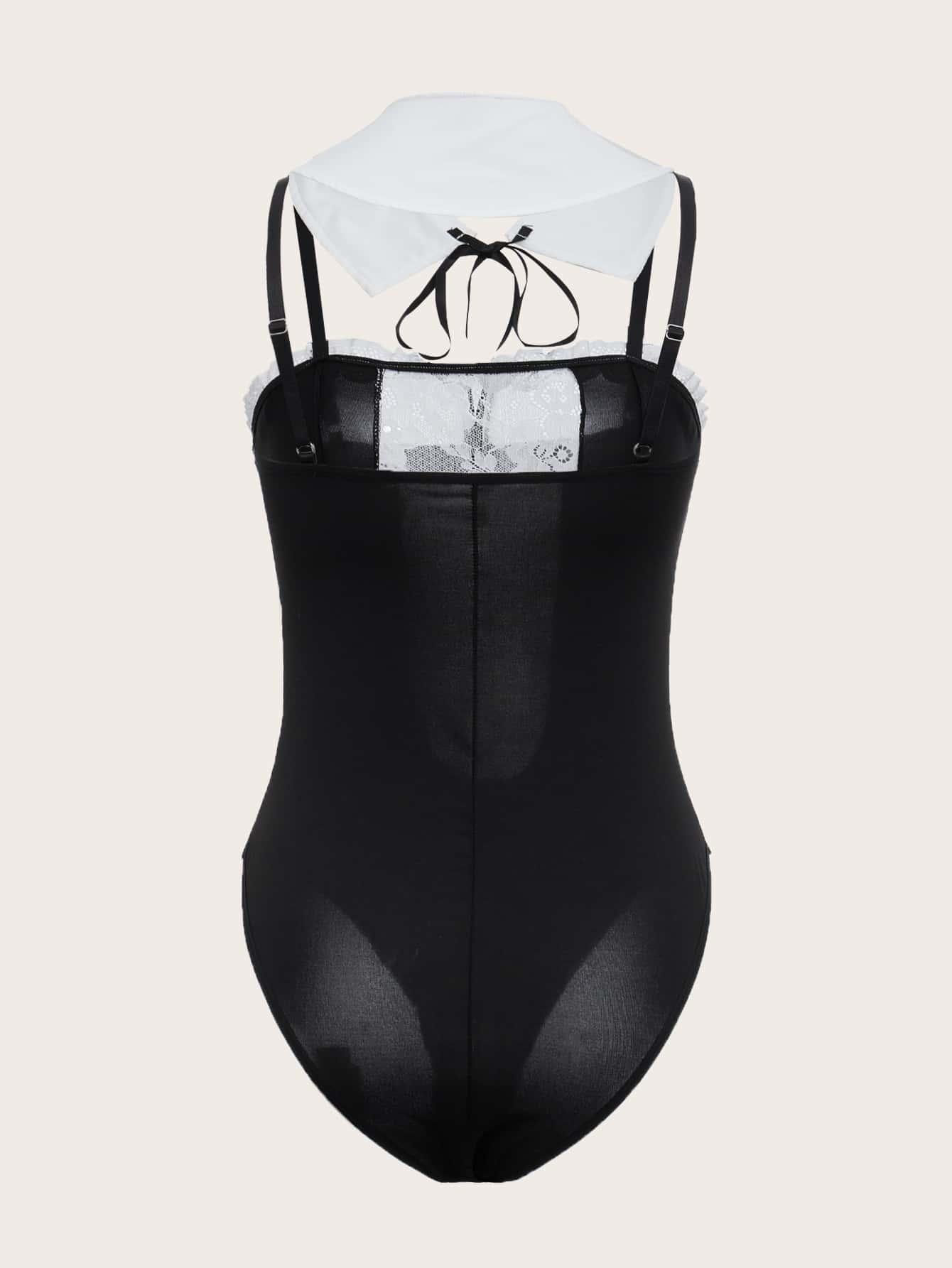 Contrast Lace Knot Teddy Bodysuit & Dickey Collar