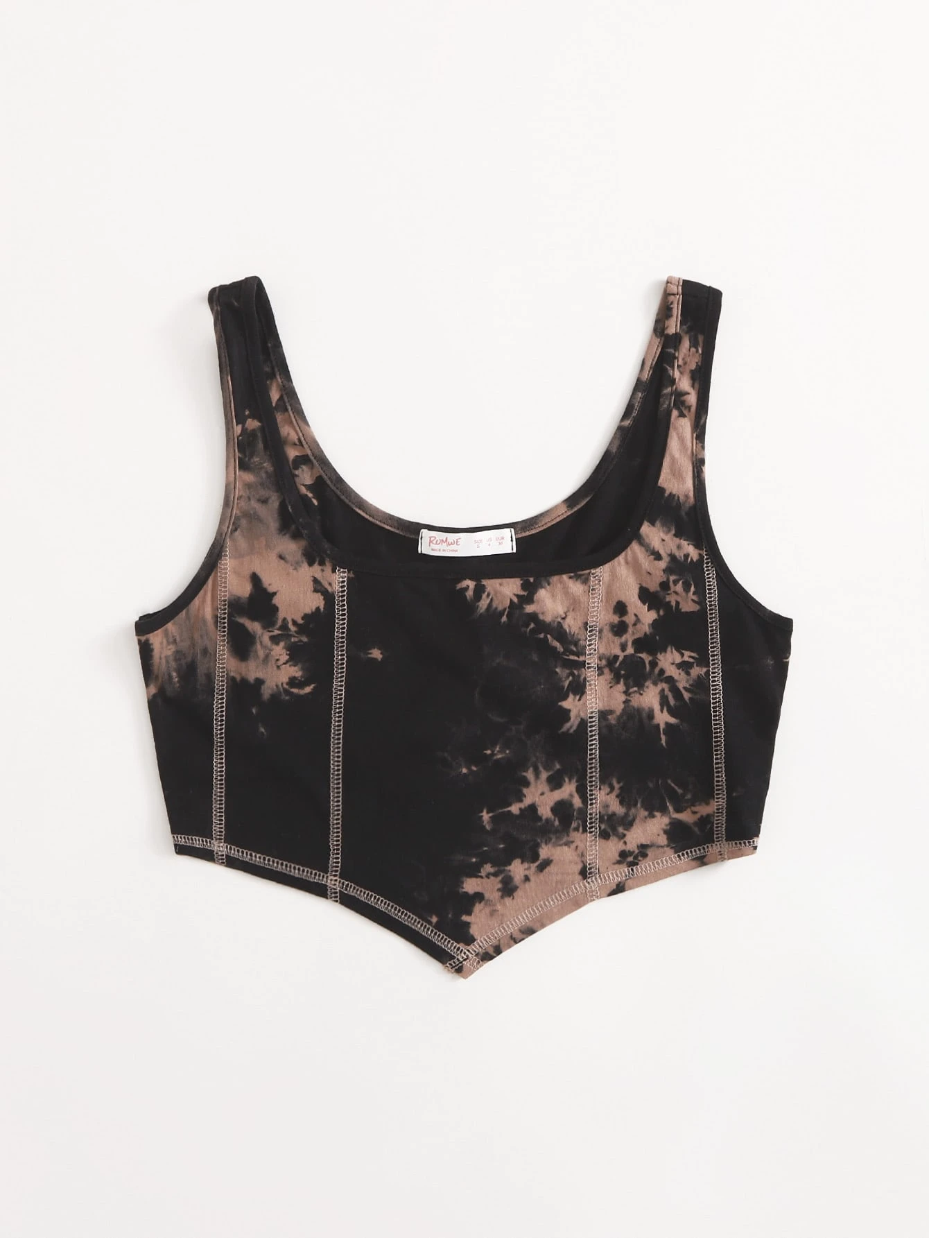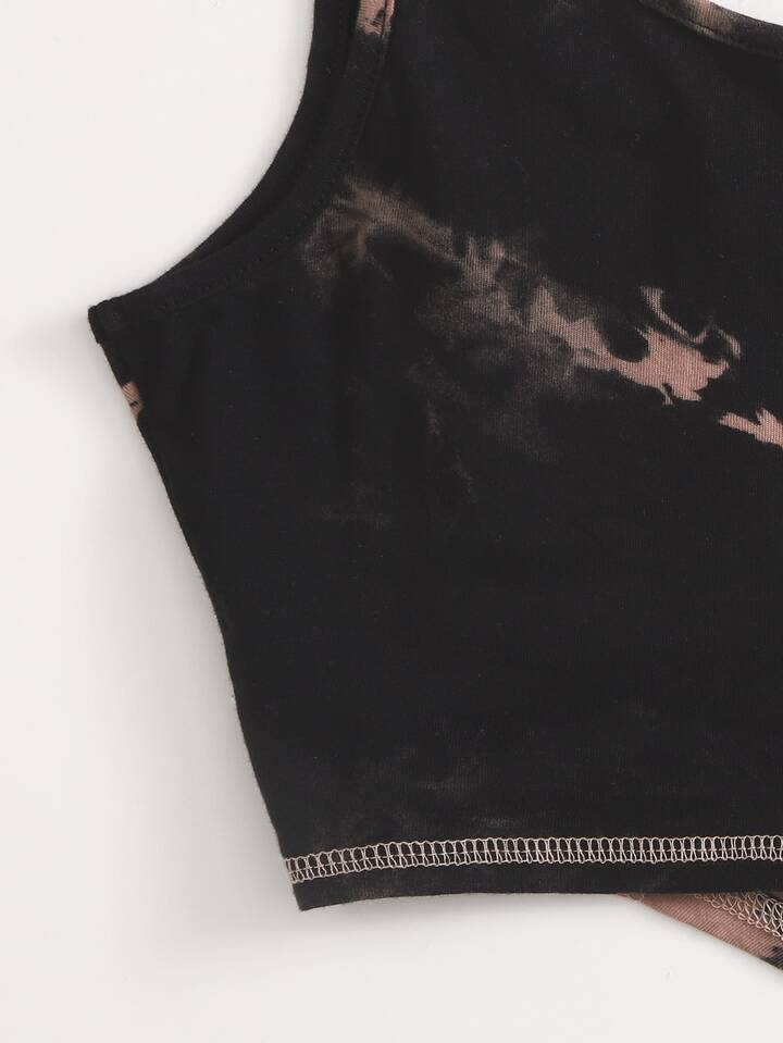 Contrast Stitching Tie Dye Ribbed Tank Top