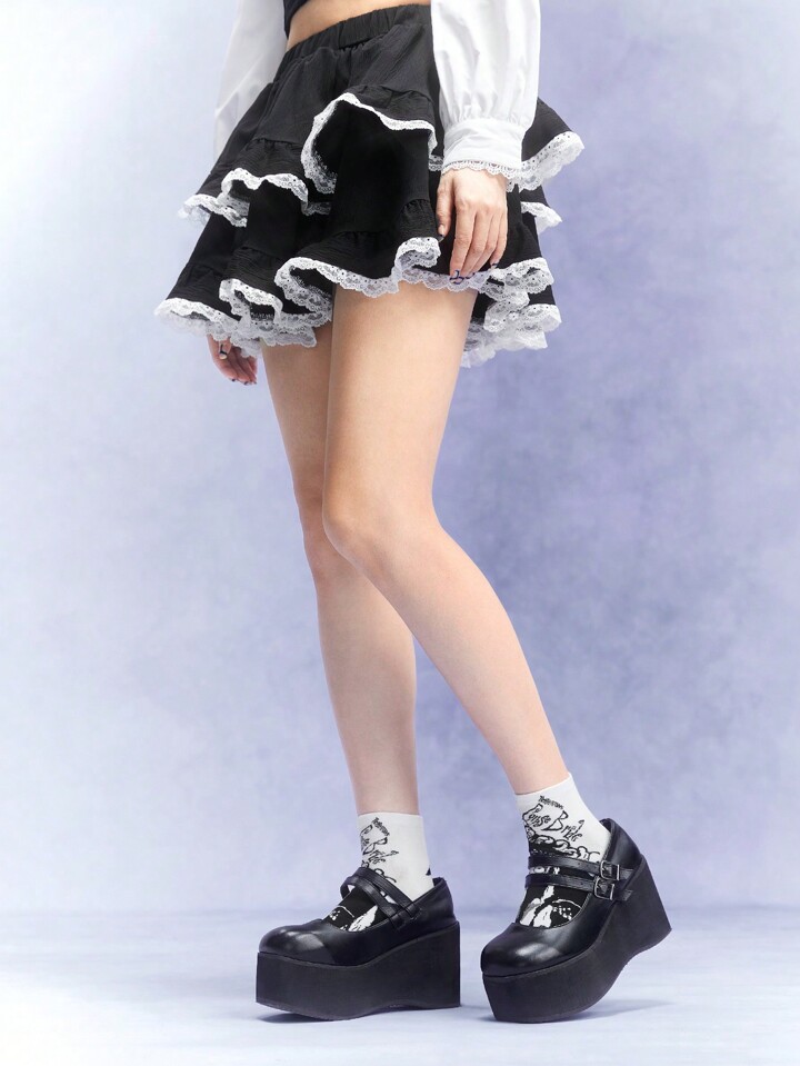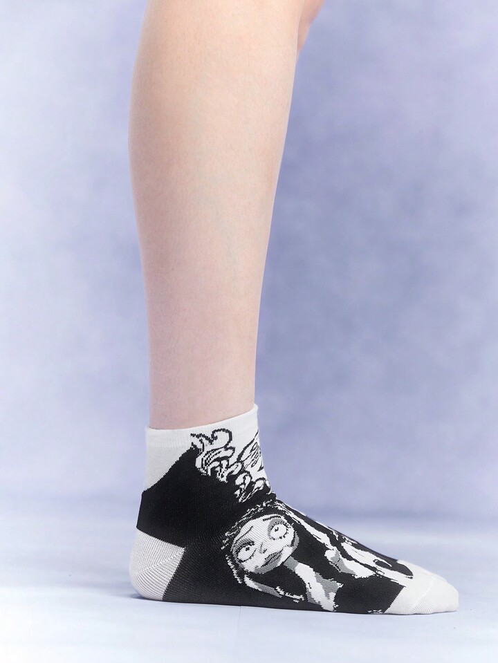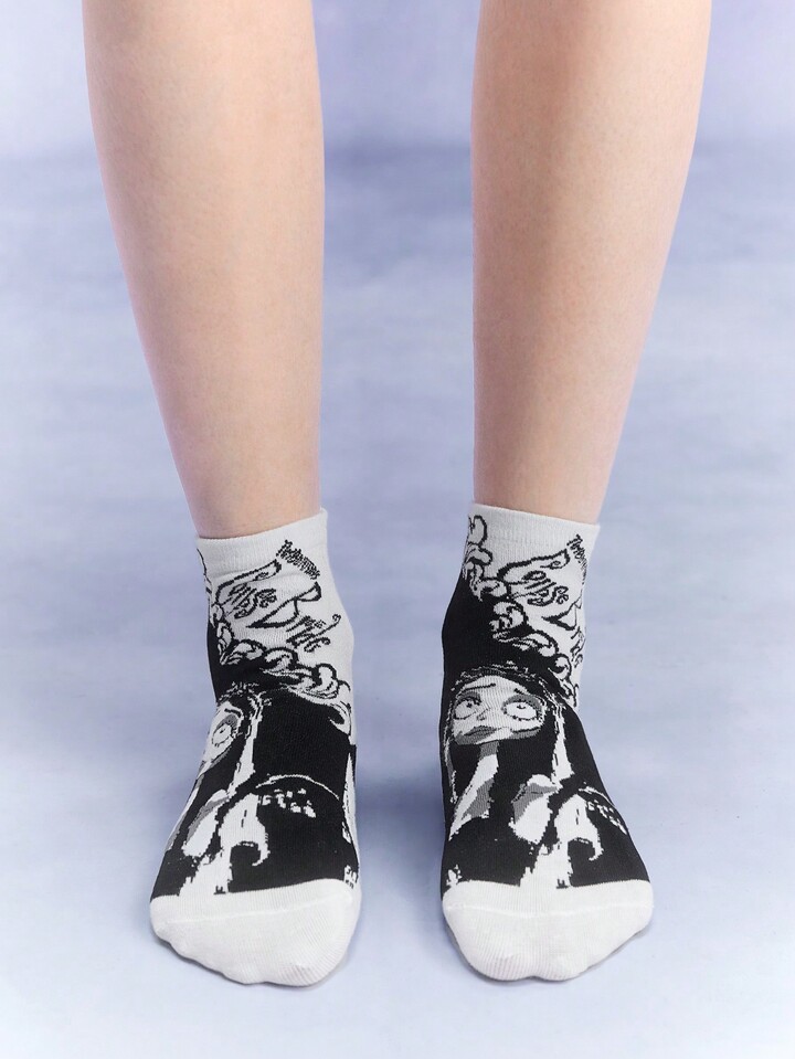 Corpse Bride | ROMWE 1pair Women's Halloween Fun Socks, Black & White, Suitable For All Seasons, Interesting Gift For Personal Wear