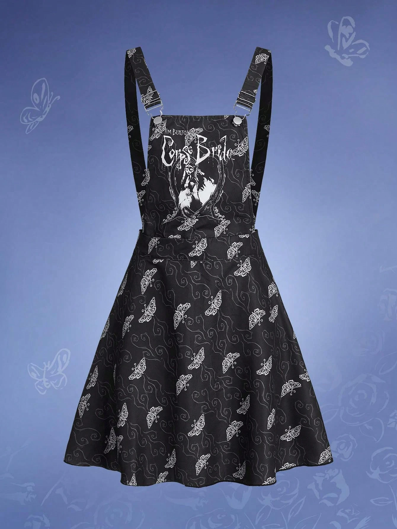 Corpse Bride | ROMWE Cartoon And Butterfly Print Overall Dress