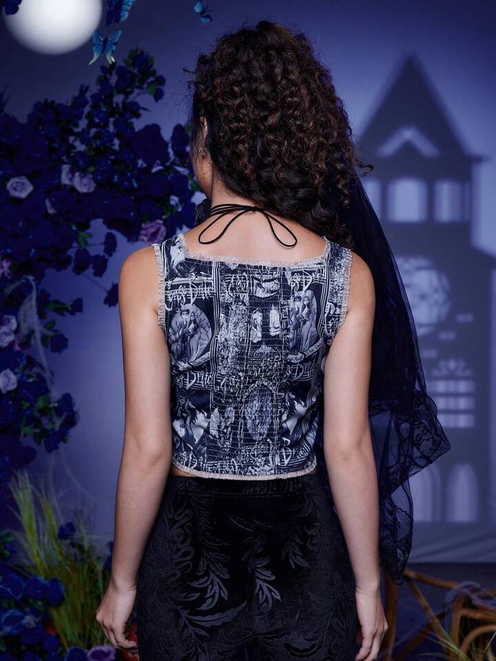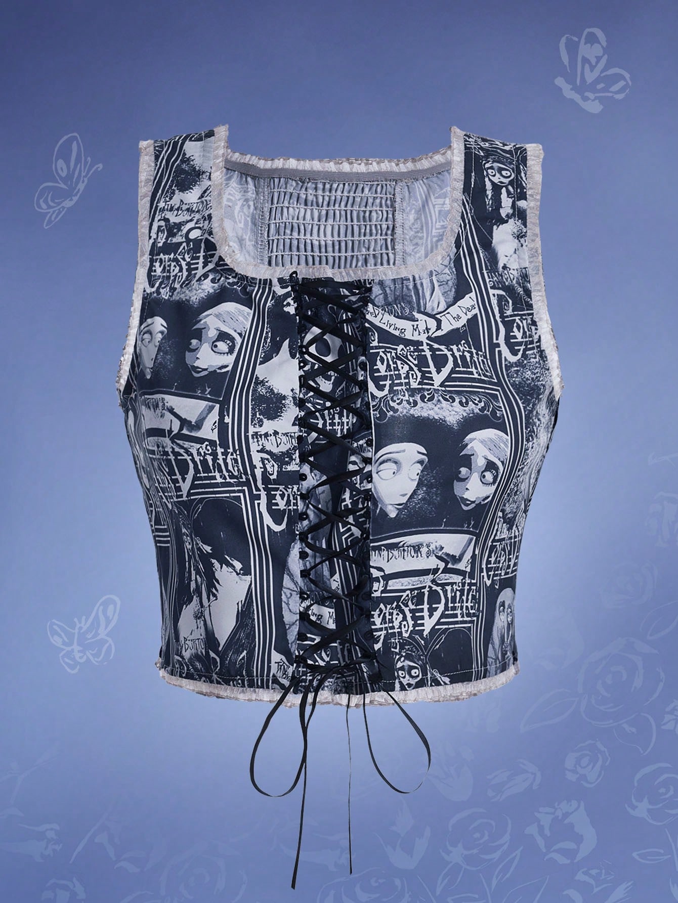 Corpse Bride | ROMWE Figure Graphic Lace Up Tank Top