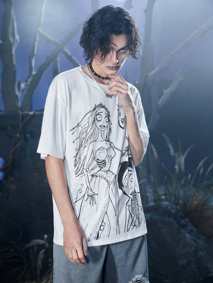 Corpse Bride | ROMWE Men Cotton Figure Graphic Tee