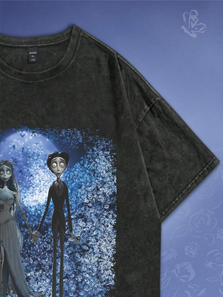 Corpse Bride | ROMWE Men's Casual Cartoon Character Printed Oversized Short Sleeve T-Shirt For Summer, School