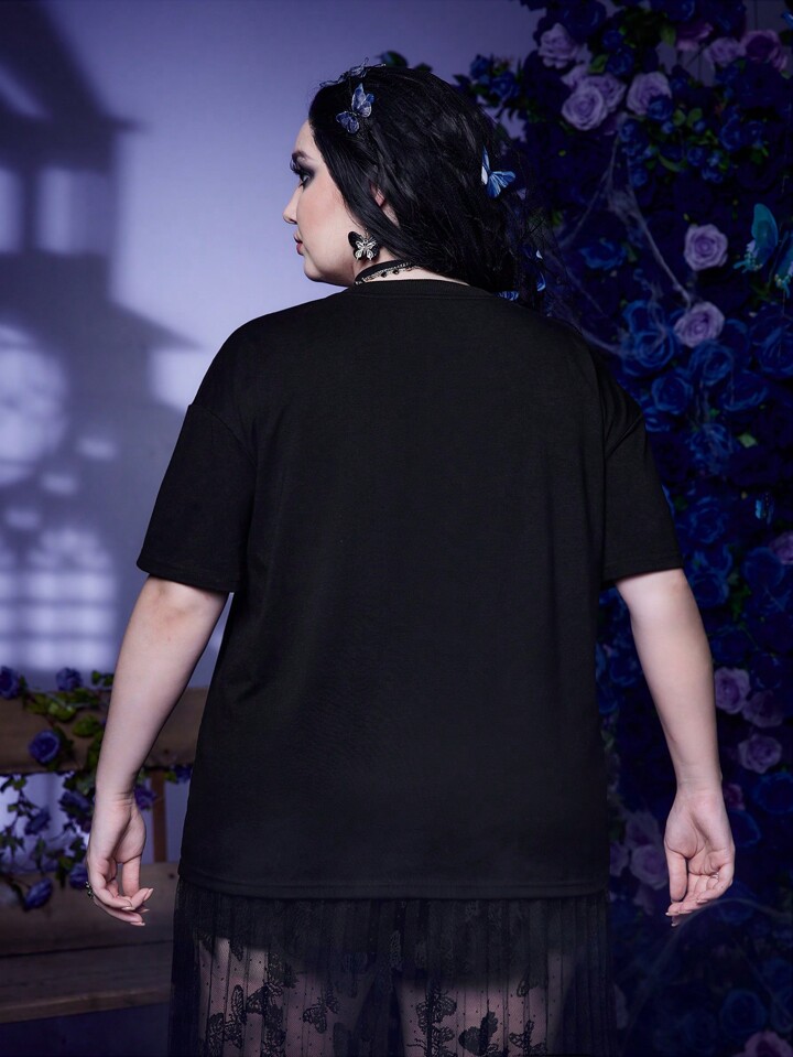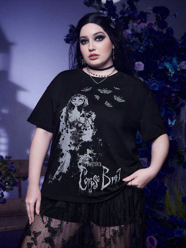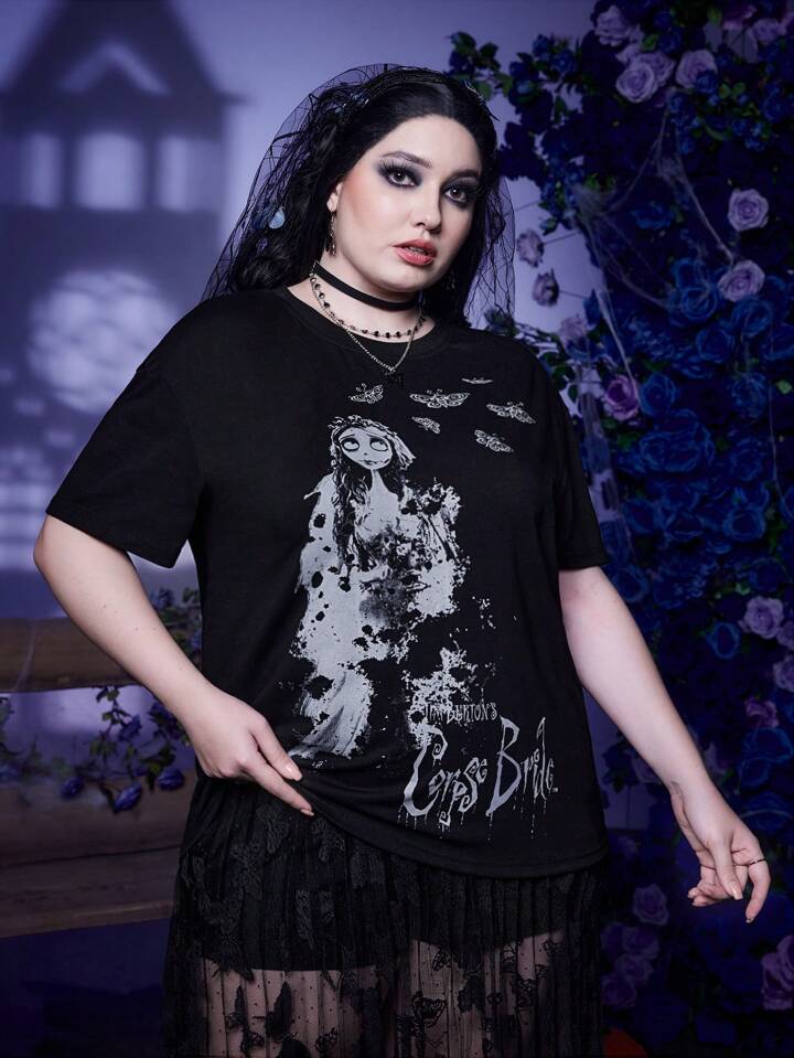 Corpse Bride | ROMWE Plus Cartoon Graphic Drop Shoulder Tee