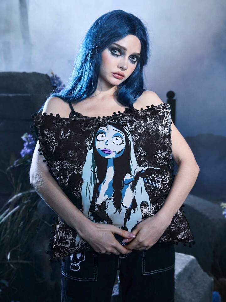 Corpse Bride | ROMWE Pom Pom Decor Bride Print Cushion Cover Without Filler